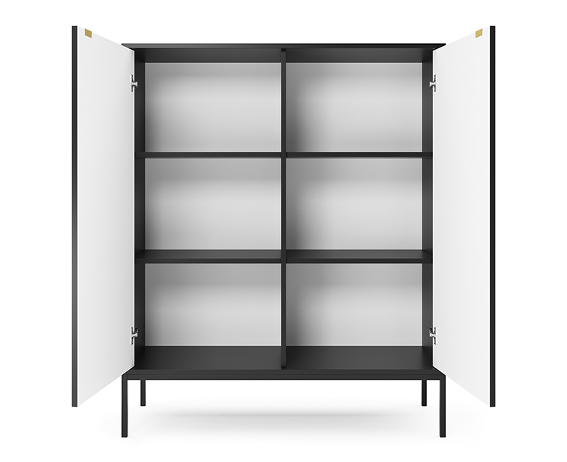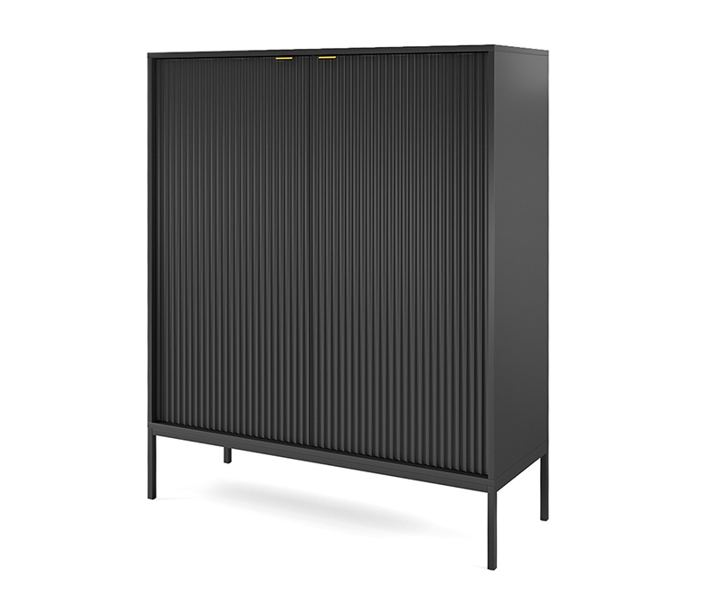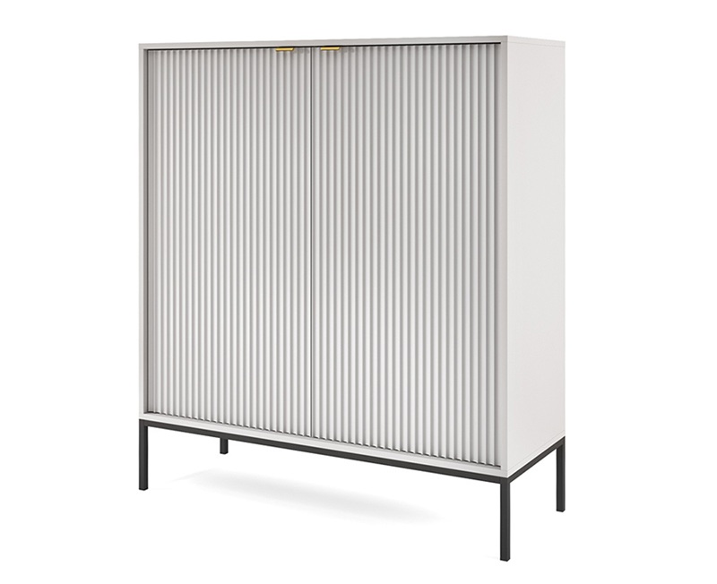 Träumen Sie von einem modernen und dennoch minimalistischen Design mit einem Hauch von Raffinesse? Wir haben etwas für Sie! Das Kari-System ist die Essenz von Eleganz, Stil, Harmonie und einzigartigem Design. Der Korpus der Kommode Kari K104 ist auf einem Metallsockel und hohen Beinen montiert. Das einzigartige Design wird durch geriffelte Fronten und goldene Griffe ergänzt.