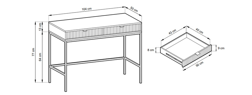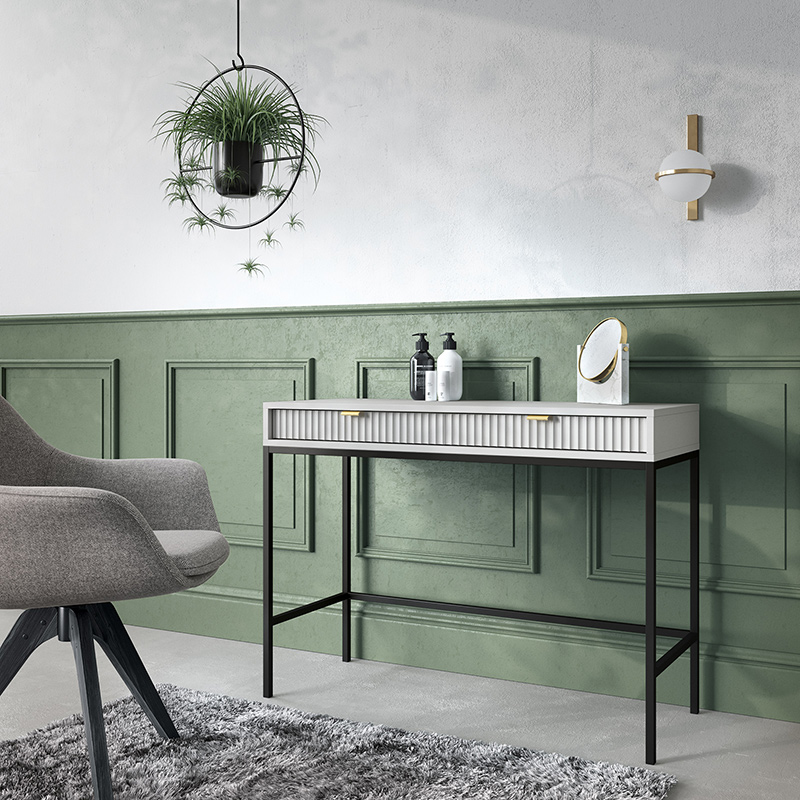 Schminktisch KARI T104 mit geriffelten Fronten und goldenen Griffen
