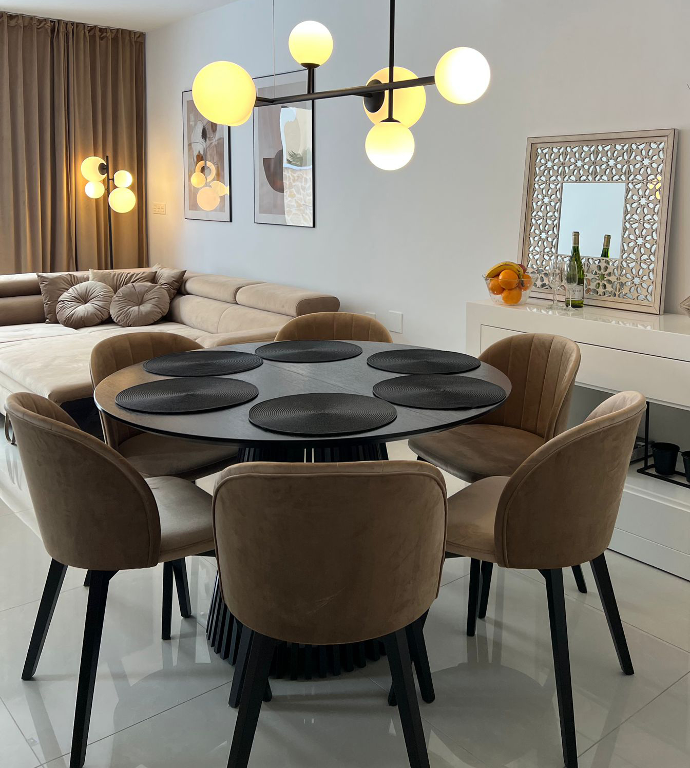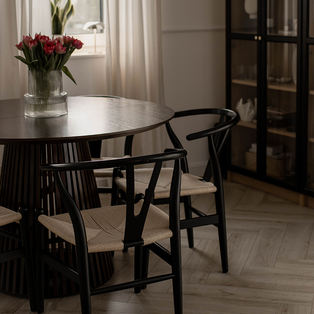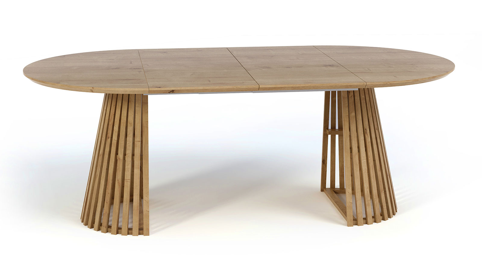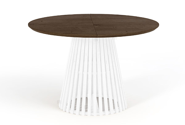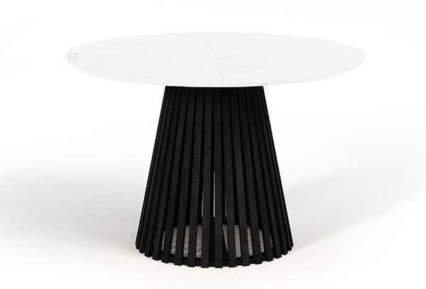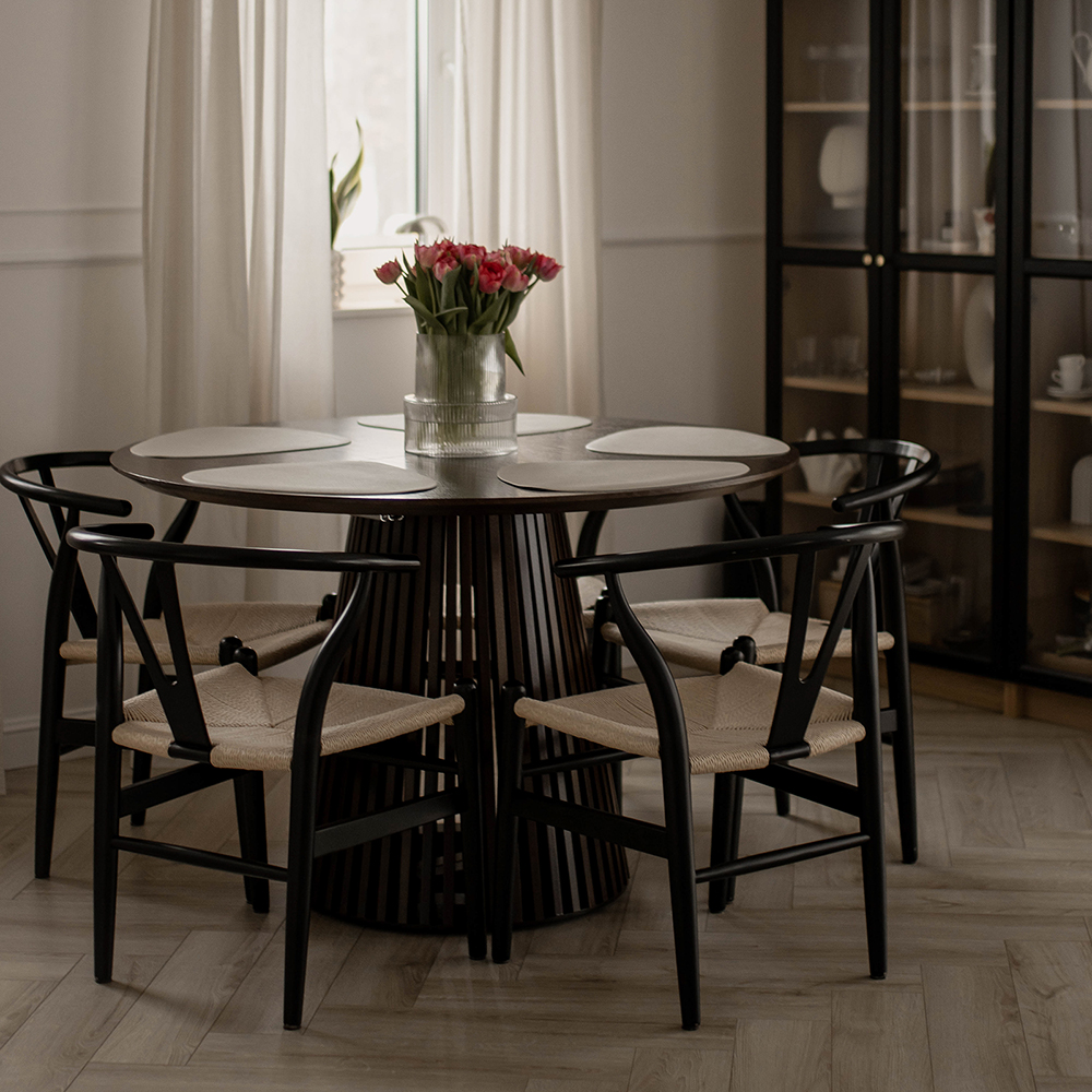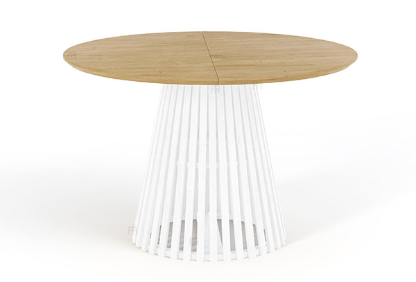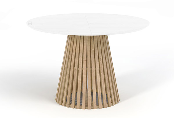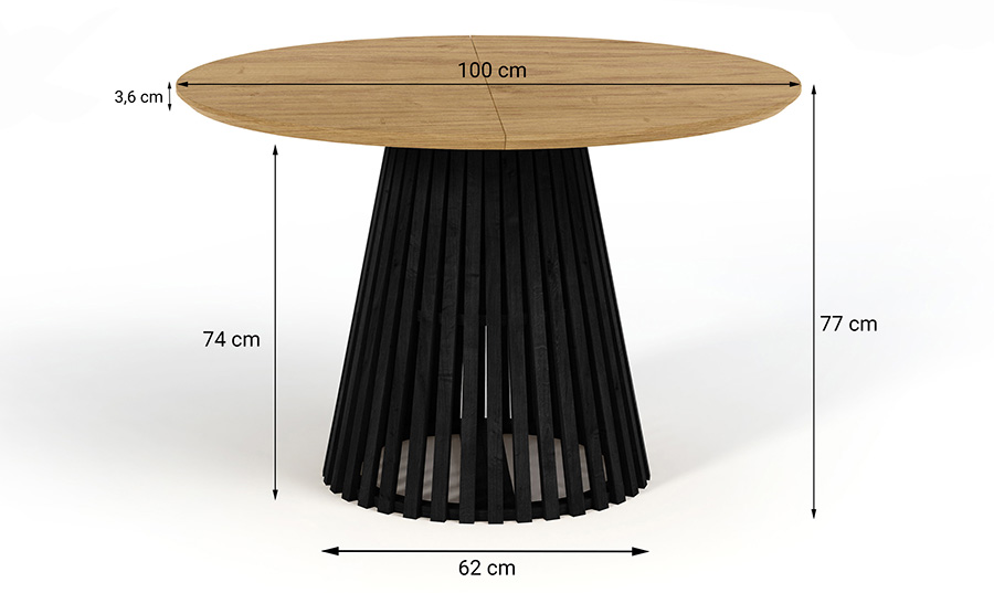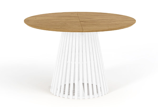 Ein Tisch mit einer Platte aus Naturfurnier ist ein elegantes und funktionales Möbelstück, das Ästhetik und Langlebigkeit perfekt vereint. Die Tischplatte aus hochwertigem Naturfurnier spiegelt die Schönheit von echtem Holz wider und behält seine einzigartige Maserung und seinen warmen Charakter. Erhältlich in mehreren Größen: Ø100/150, Ø100/200, Ø110/160, Ø110/210, Ø120/170 und Ø120/220.