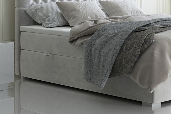 Das DIVA-Kontinentalbett verfügt über eine dekorative Steppung am gesamten Kopfteil, die ihm außergewöhnlichen Charme und Eleganz verleiht, typisch für den Glamour-Stil. Sein einzigartiges Design begeistert und macht es nicht nur zu einem Möbelstück zum Schlafen, sondern auch zu einem attraktiven Dekorationselement im Schlafzimmer. Das aus Materialien höchster Qualität gefertigte DIVA-Bett strahlt Luxus und Komfort aus.