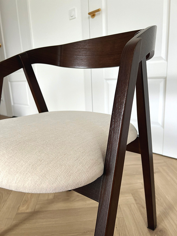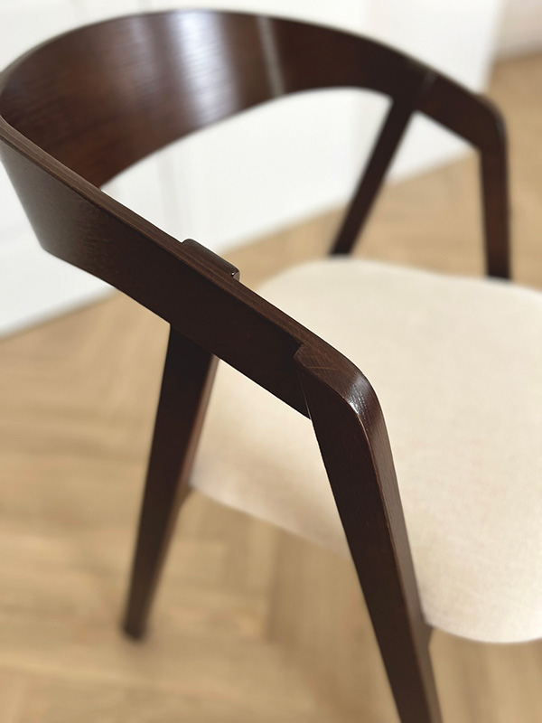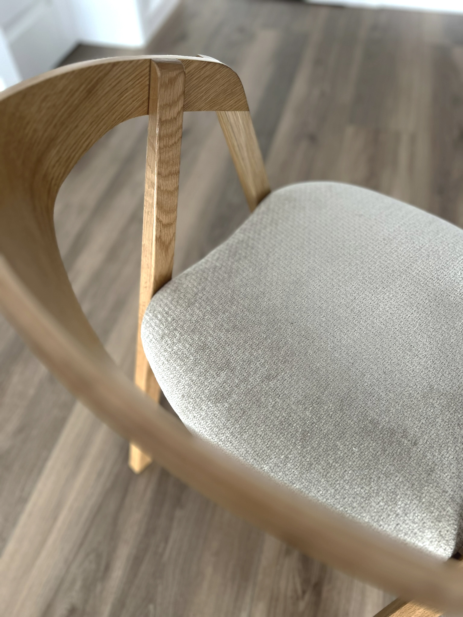 Der M120-Stuhl ist die Quintessenz von Eleganz und Komfort. Es besteht aus hochwertigem Eichenholz und vereint natürliche Haltbarkeit und Ästhetik. Die Holzstruktur verleiht dem Innenraum Wärme und Klasse und verleiht ihm dank der weichen, gepolsterten Sitzfläche gleichzeitig einen Hauch von Modernität.