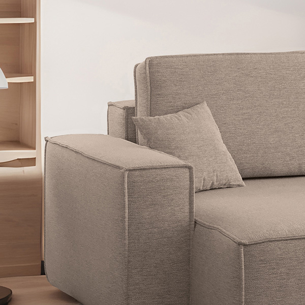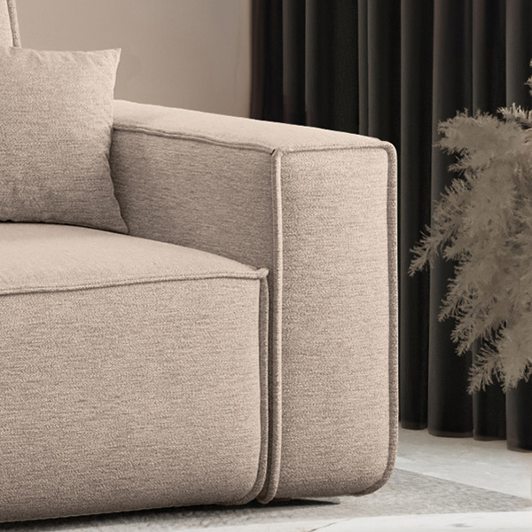 Das Ecksofa Kave XL ist ein minimalistisches und dennoch effektives Möbelstück, das durch sein modernes Design und die sorgfältig verarbeiteten Nähte besticht, die ihm einen einzigartigen Charakter verleihen. Es ist die perfekte Wahl für Menschen, die Wert auf reine Form, Komfort und praktische Lösungen in einem legen.