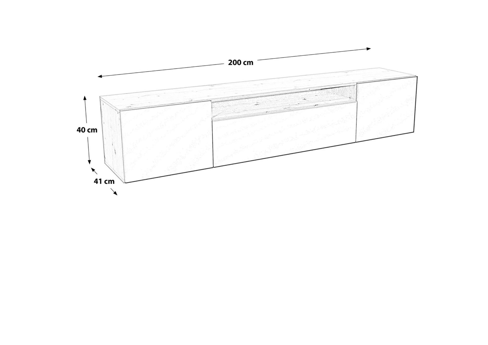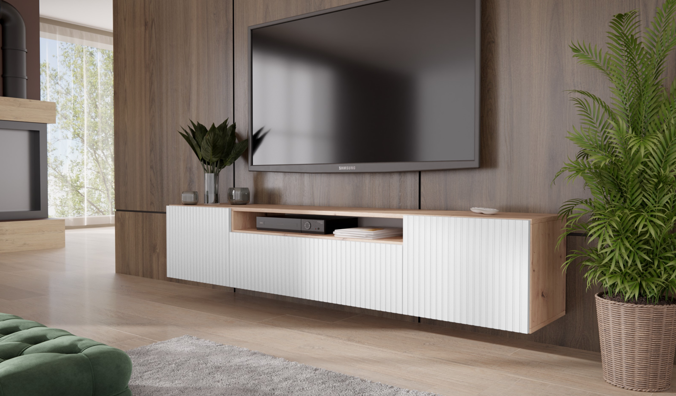 TV-Lowboard RIO 200 cm hängend mit geriffelter Front