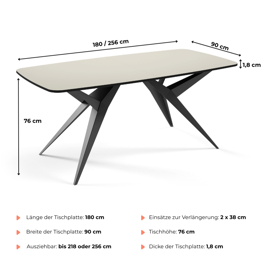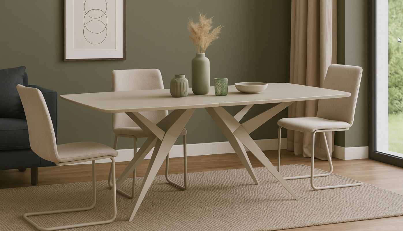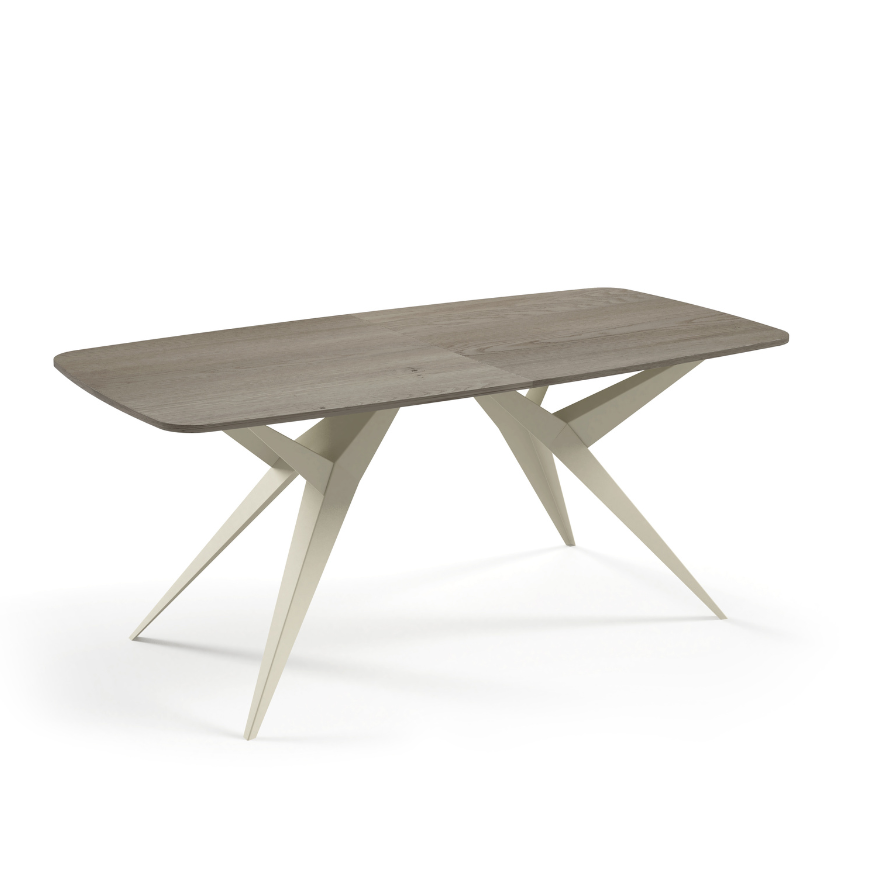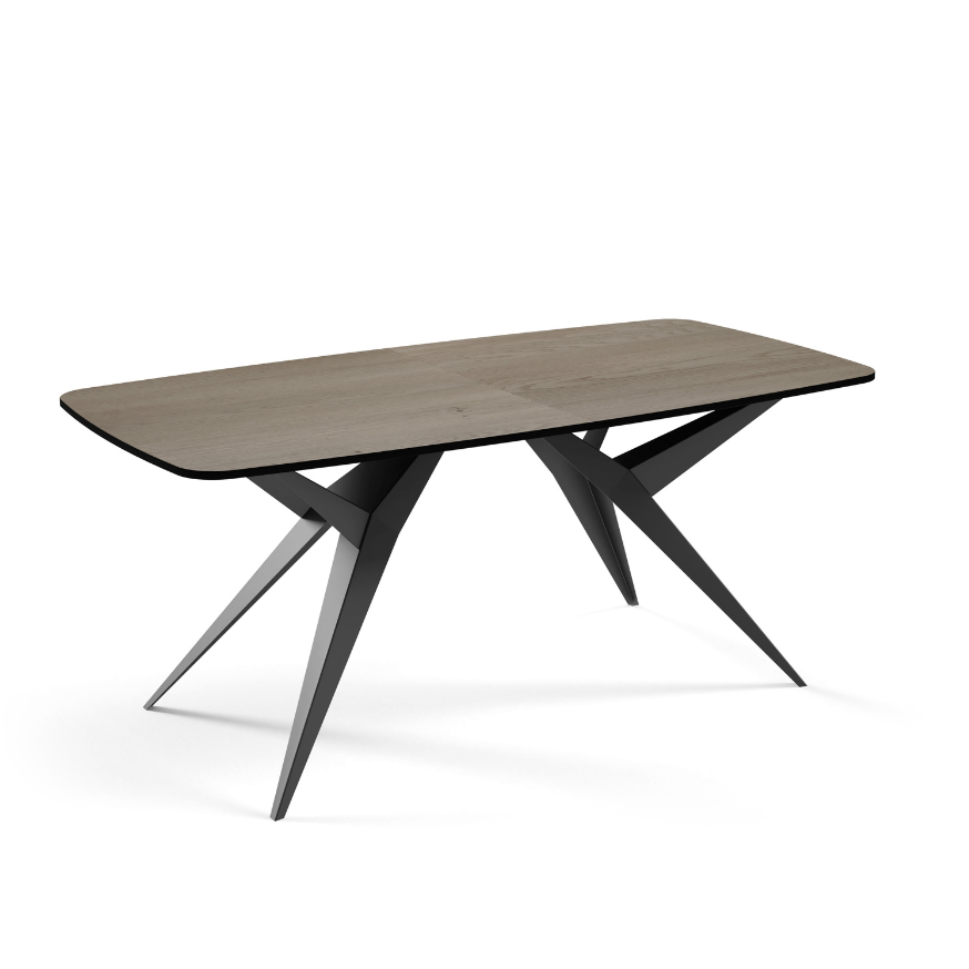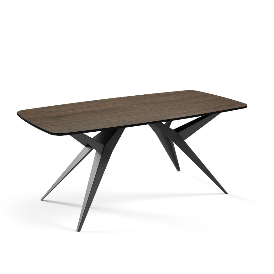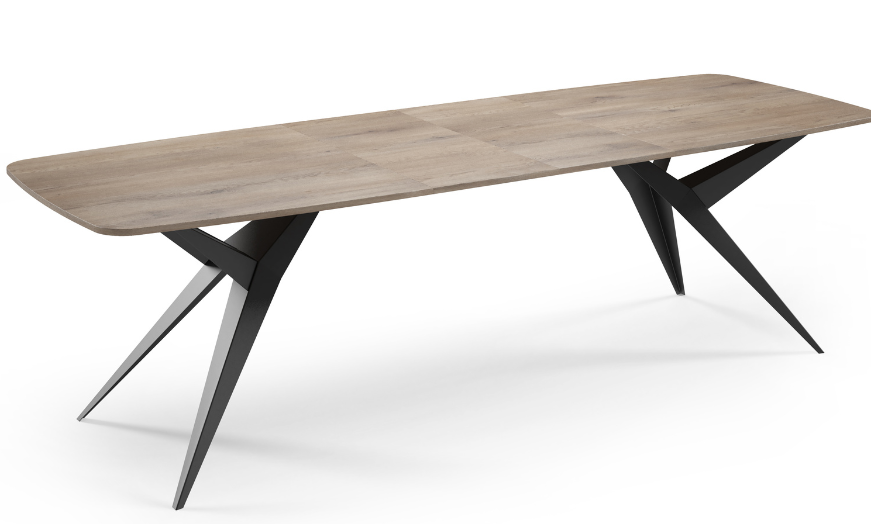 Eleganter, ausziehbarer Tisch mit hochwertiger Holzplatte und markantem Metallgestell. Das moderne Design vereint Stil und Funktionalität – perfekt für Esszimmer und Wohnbereiche mit Anspruch. Ideal für Gäste und flexible Raumgestaltung.
