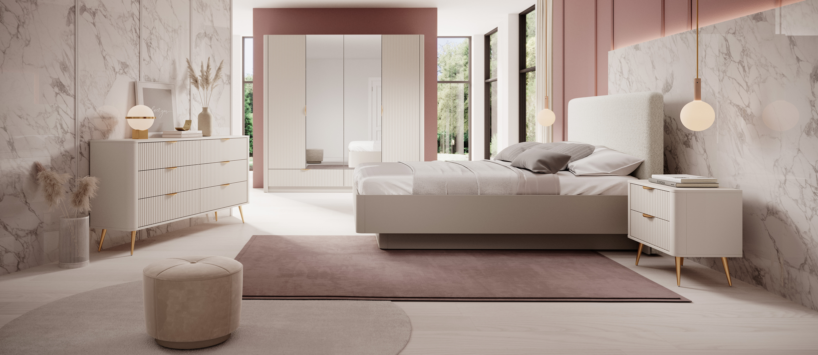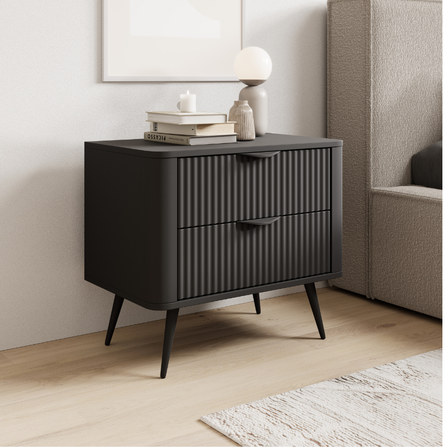 Träumen Sie von einem modernen, minimalistischen Interieur mit einem Hauch von Eleganz? Wir haben etwas für Sie! Das LATE-System ist die Quintessenz von Eleganz, Stil, Harmonie und einzigartigem Design. Der Nachttisch ruht auf hohen Metallbeinen und sein einzigartiges Design wird durch gerippte Fronten betont.