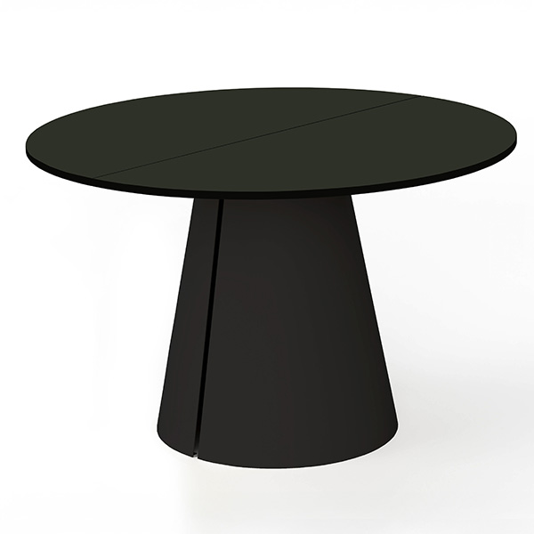 Der Esstisch rund Säulenfuß ausziehbar CORTIC ist ein moderner Rundtisch für Esszimmer, Wohnzimmer und den Bürobereich. Die Tischplatte aus laminierter Spanplatte ist pflegeleicht und in vielen Farbvarianten erhältlich. Dank zwei Einlegeplatten lässt sich der Tisch je nach Durchmesser flexibel verlängern: Ø100 cm bis 176 cm, Ø120 cm bis 196 cm. Der konische Säulenfuß aus Metall sorgt für stabilen Stand und ermöglicht eine freie Stuhlplatzierung rund um den Tisch.
