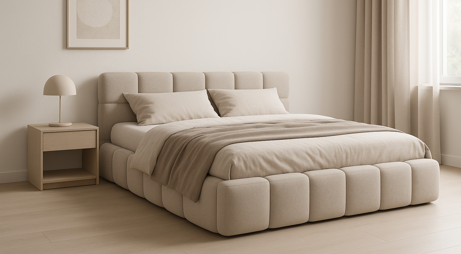 Polsterbett aus elegantem Bouclé-Stoff Quelle oder weicher Chenille Perfect Harmony. Mit praktischem Bettkasten sowie wahlweise Metall- oder Holzlattenrost. Die perfekte Kombination aus Komfort, Funktionalität und modernem Design. Das sanft gepolsterte Kopfteil lädt zum Anlehnen ein und sorgt für gemütliche Lesestunden. Erhältlich in mehreren Größen und Farben, pflegeleicht und langlebig – ideal für jedes Schlafzimmer.