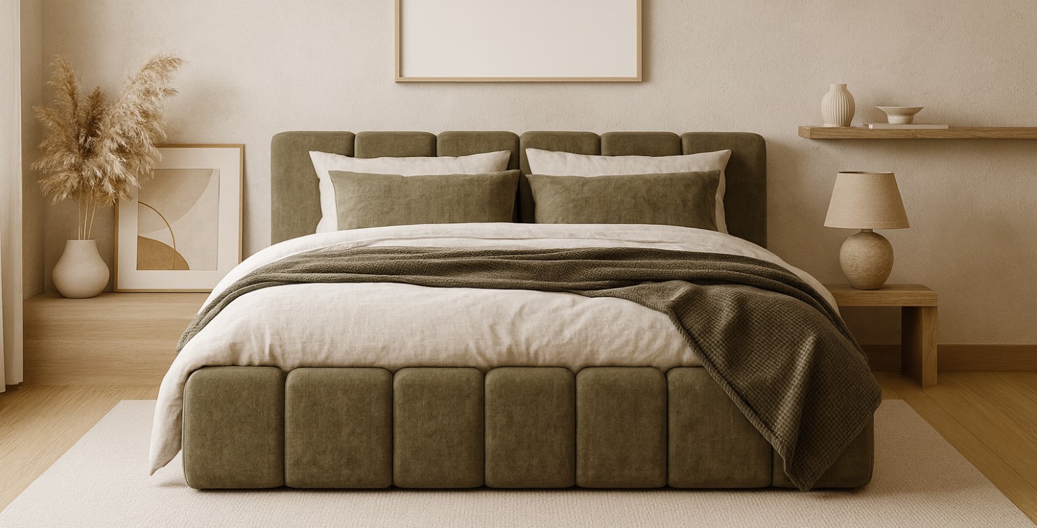 Das Polsterbett Kalla in der Ausführung Medium ist die perfekte Wahl für alle, die modernen Design, sanfte Linien und außergewöhnlichen Komfort schätzen. Seine abgerundete, modulare Form umhüllt den Raum und schafft im Schlafzimmer eine Atmosphäre der Entspannung und Geborgenheit. Markante, gesteppte Elemente verleihen dem Bett Charakter und lassen es zugleich besonders weich und einladend wirken.