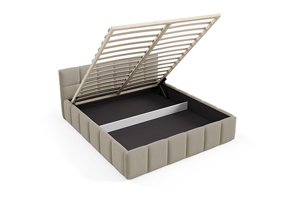 Er besteht aus elastischen Leisten, die auf einem stabilen Metallrahmen befestigt sind. Ausgestattet mit einem Gasdruckheber sorgt er für ein sanftes und leichtes Öffnen und erleichtert die Nutzung des Bettkastens.