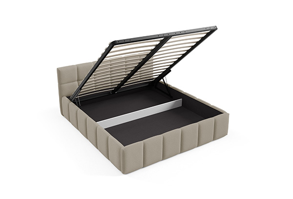 • Bettkasten - von der Vorderseite des Bettes zu öffnen, mit Gasdruckfedern zur Unterstützung des Öffnens