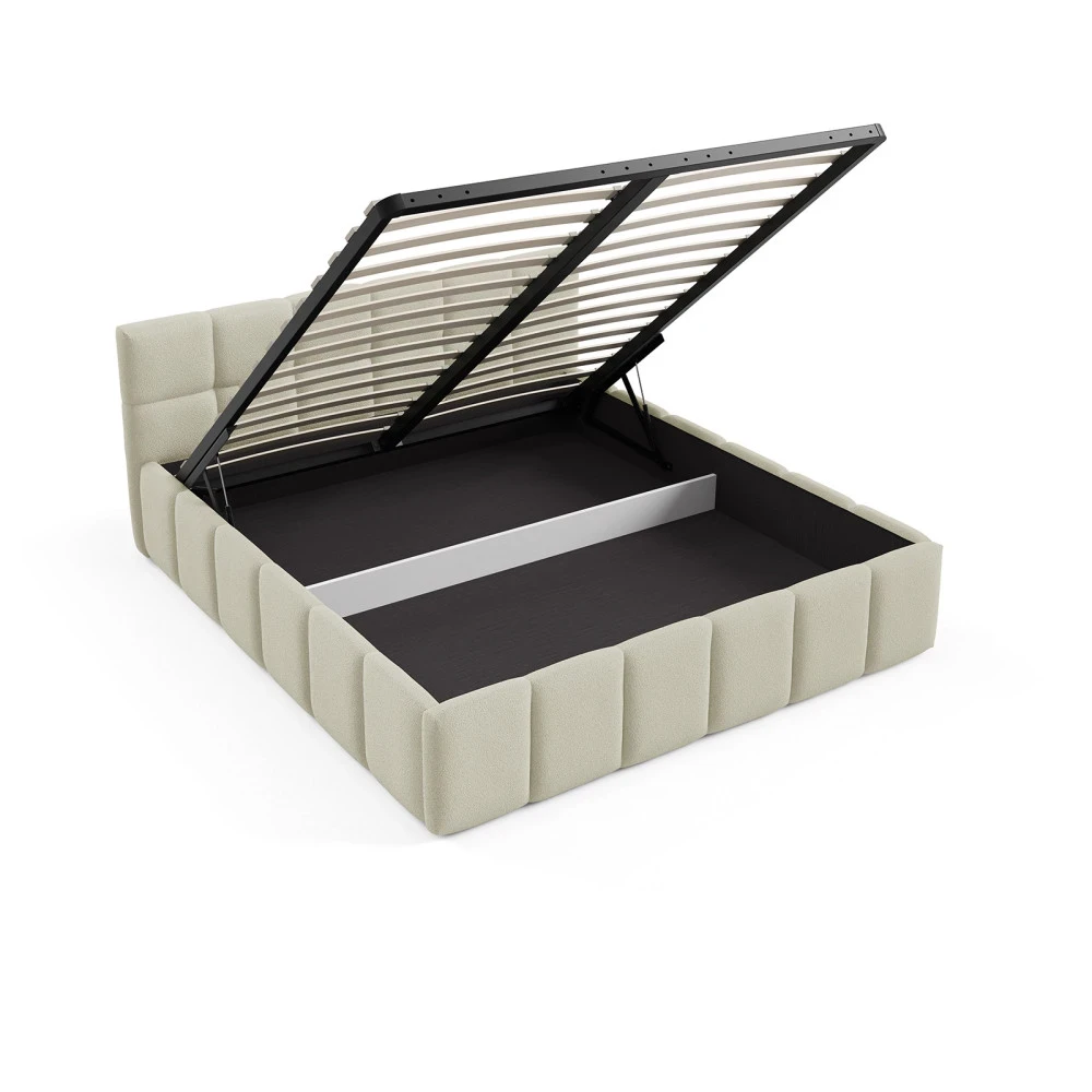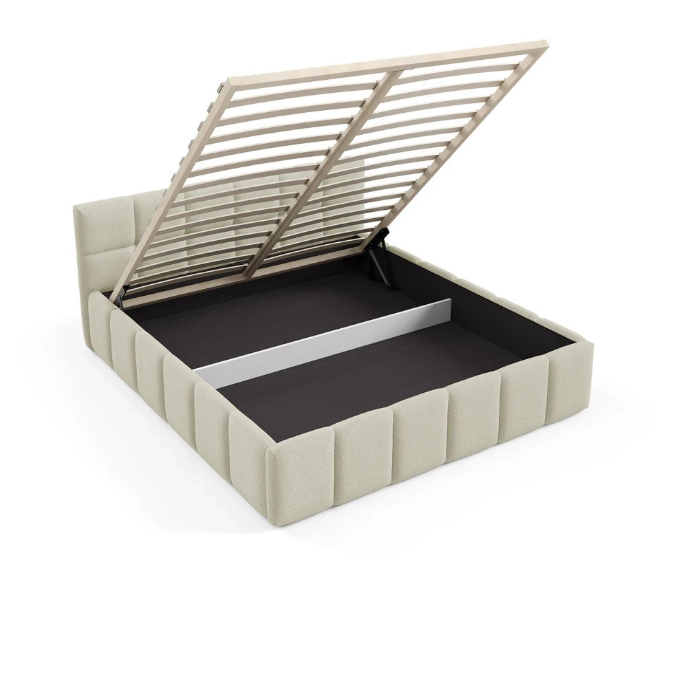 Das NUBO SLIM Bett vereint modernes Design, hohen Komfort und praktischen Stauraum. Bezogen mit hochwertigem, weichem QUELLE Bouclé-Stoff oder PERFECT HARMONY Chenille bietet es eine kuschelige Polsteroptik und eine angenehme Haptik. Das integrierte Bettfach bietet viel Stauraum und ist dank des klappbaren Lattenrosts leicht zugänglich.