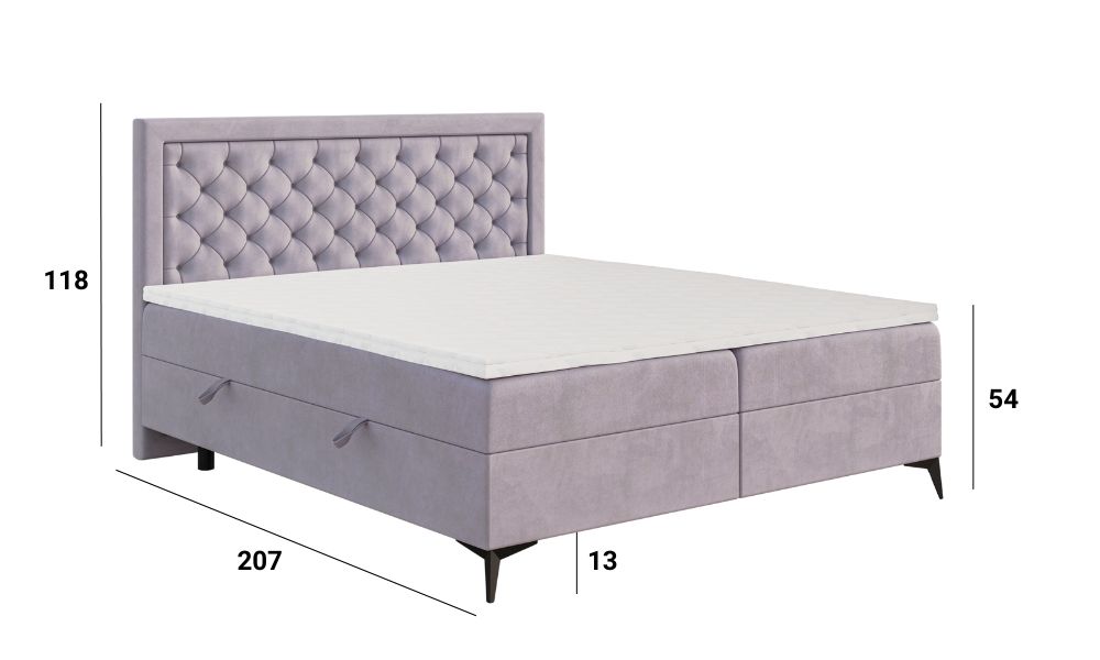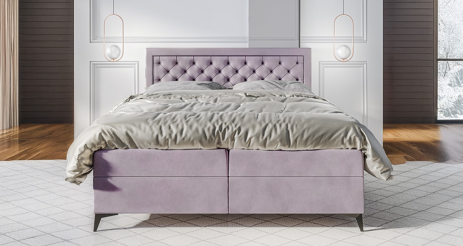Das Polsterbett LIZA ist ein eleganter Vorschlag mit einer weichen, gemütlichen Linienführung. Den Charakter des Modells bestimmt das kopfteilig dicht gesteppte Rautenmuster, eingefasst in einen breiten, gepolsterten Rahmen, der die Komposition präzise abrundet und das handwerkliche Detail hervorhebt. Das Gesamtbild wirkt klassisch und zugleich modern, wodurch sich das Bett mühelos in verschiedene Einrichtungsstile einfügt – von Modern Classic bis Glamour.