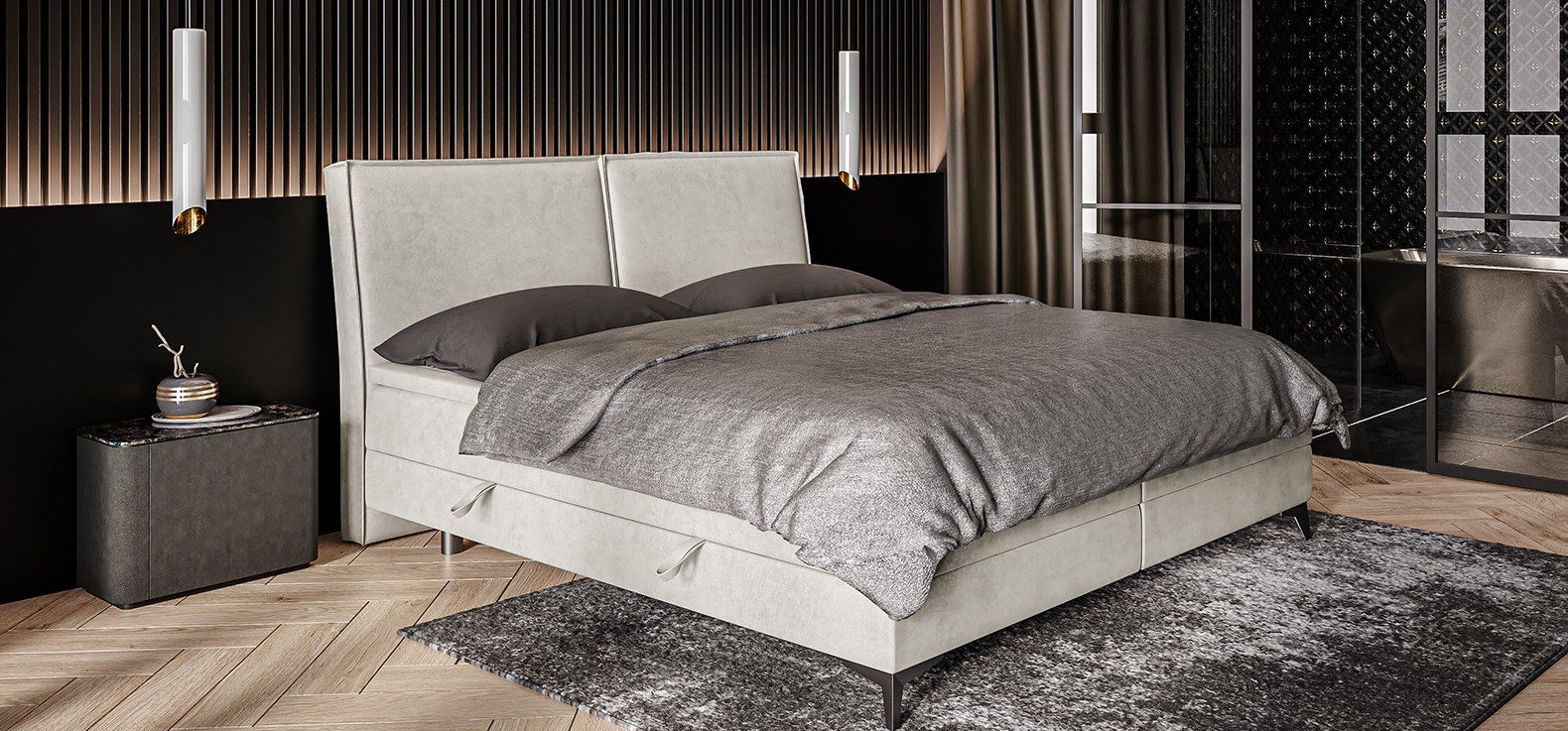 Das Polsterbett LORI steht für ausgewogenen Minimalismus mit einem eleganten Akzent. Das Kopfteil ist in zwei gleich große Segmente unterteilt, was der Form eine ruhige Rhythmik verleiht und die Silhouette ordnet. Ein dekorativer Ziernaht betont die Teilung der Paneele und verleiht dem Möbelstück eine beinahe schmuckhafte Präzision. Die glatte, weiche Rückenfläche bietet zugleich angenehmen Halt im täglichen Gebrauch.