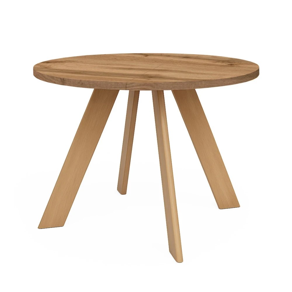 Eleganter runder Esstisch LEX für modernes Wohnen – funktional und robust zugleich. Die runde, laminierte Tischplatte ist besonders widerstandsfähig gegen Kratzer und Flecken, während die schräg gestellten Beine aus massivem Buchenholz für Stabilität und eine leichte, skandinavische Optik sorgen. Der Tisch lässt sich im Handumdrehen verlängern: wahlweise mit einer oder zwei Einlegeplatten à 50 cm (plus 50 bzw. 100 cm), ideal für spontanen Besuch oder große Familienfeiern. Erhältlich in vielen Größen und attraktiven Dekoren, damit er perfekt zu Ihrem Interieur passt.