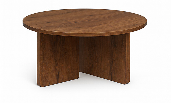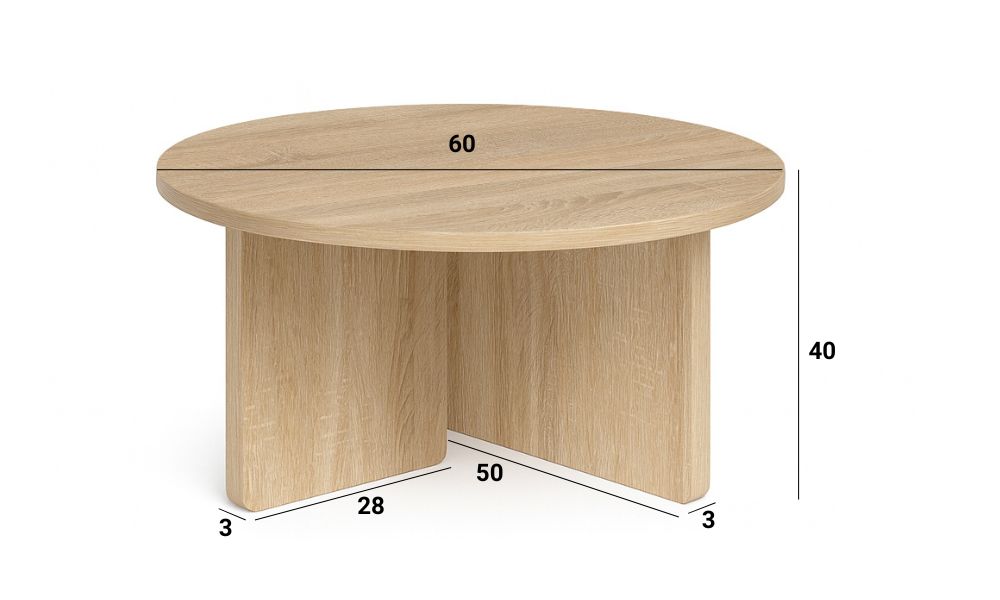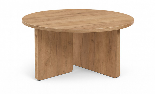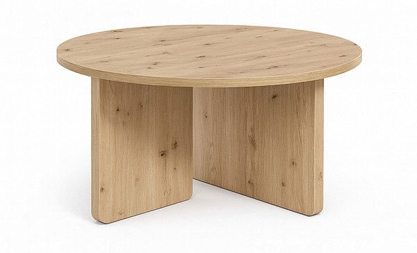 Der minimalistische Couchtisch FAVI mit einem Durchmesser von 60 oder 75 cm vereint eine klare Form mit Funktionalität. Die runde Tischplatte und das Gestell aus laminierter Platte sind pflegeleicht, und die natürliche Dekoroberfläche verleiht modernen und skandinavischen Innenräumen eine warme Atmosphäre. Dank seiner kompakten Abmessungen passt er perfekt in kleinere Wohnzimmer und Entspannungsbereiche.