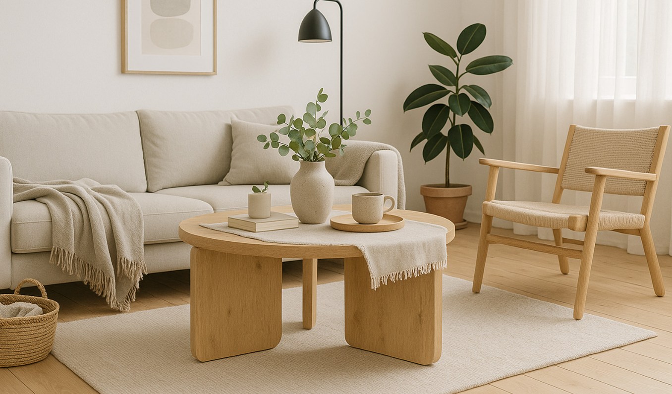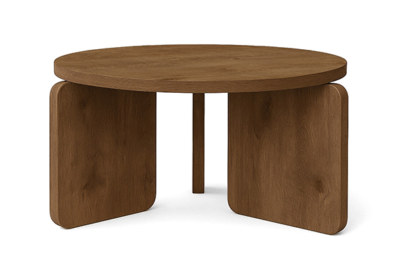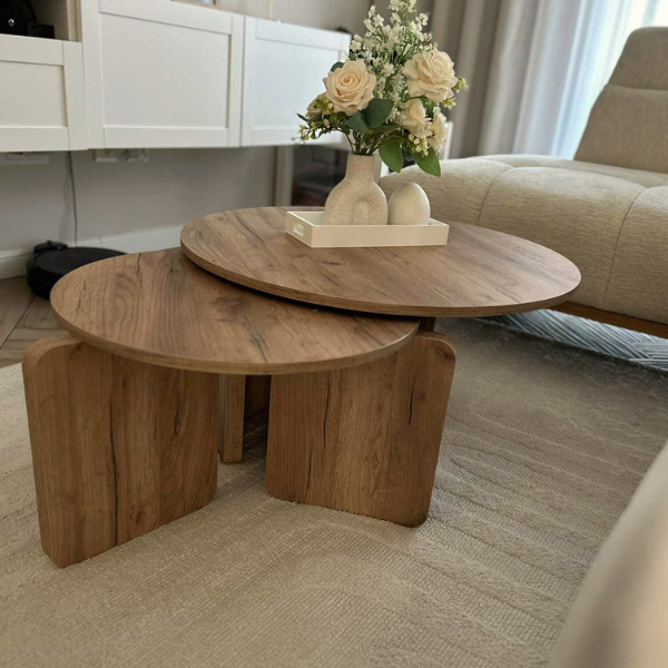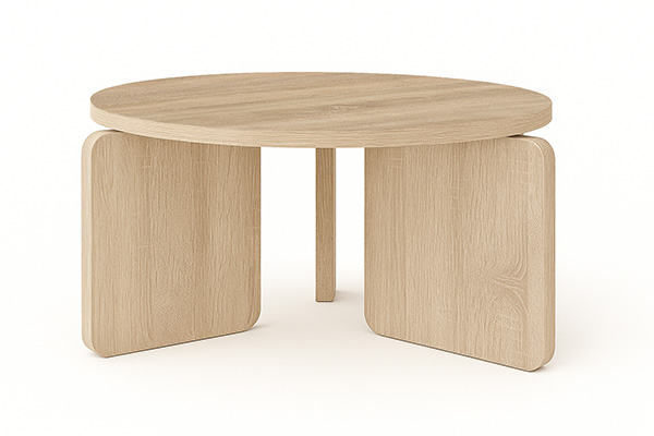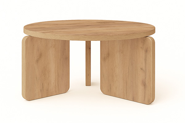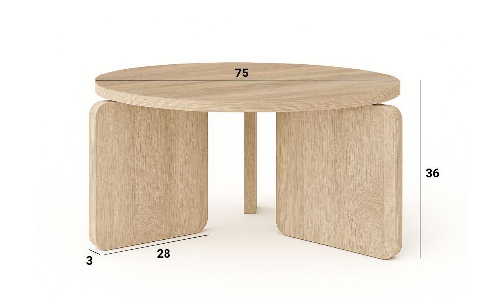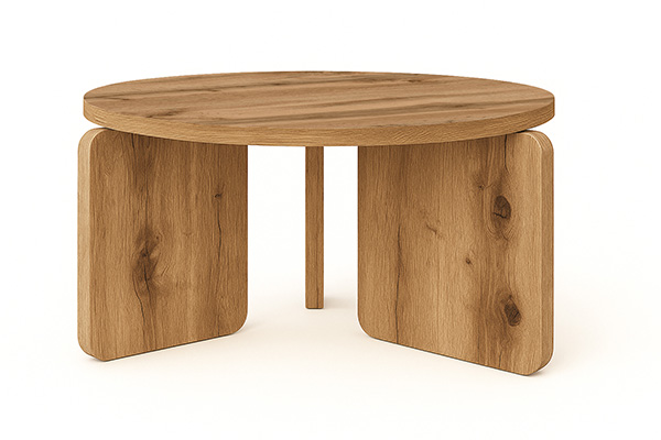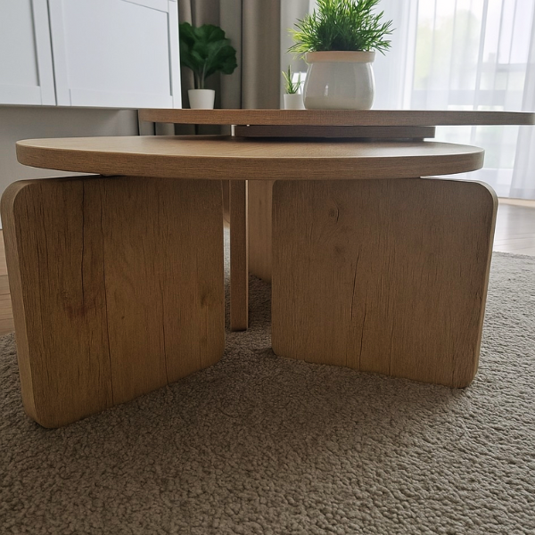 Minimalistischer Couchtisch TAO mit wählbarem Durchmesser: 60 oder 70 cm. Die runde Tischplatte und das Gestell aus laminierter Platte sind pflegeleicht, während die natürliche Dekoroberfläche modernen und skandinavischen Innenräumen eine warme Note verleiht. Durch seine kompakten Maße passt der Tisch ideal in kleinere und größere Wohnzimmer sowie in Loungebereiche.