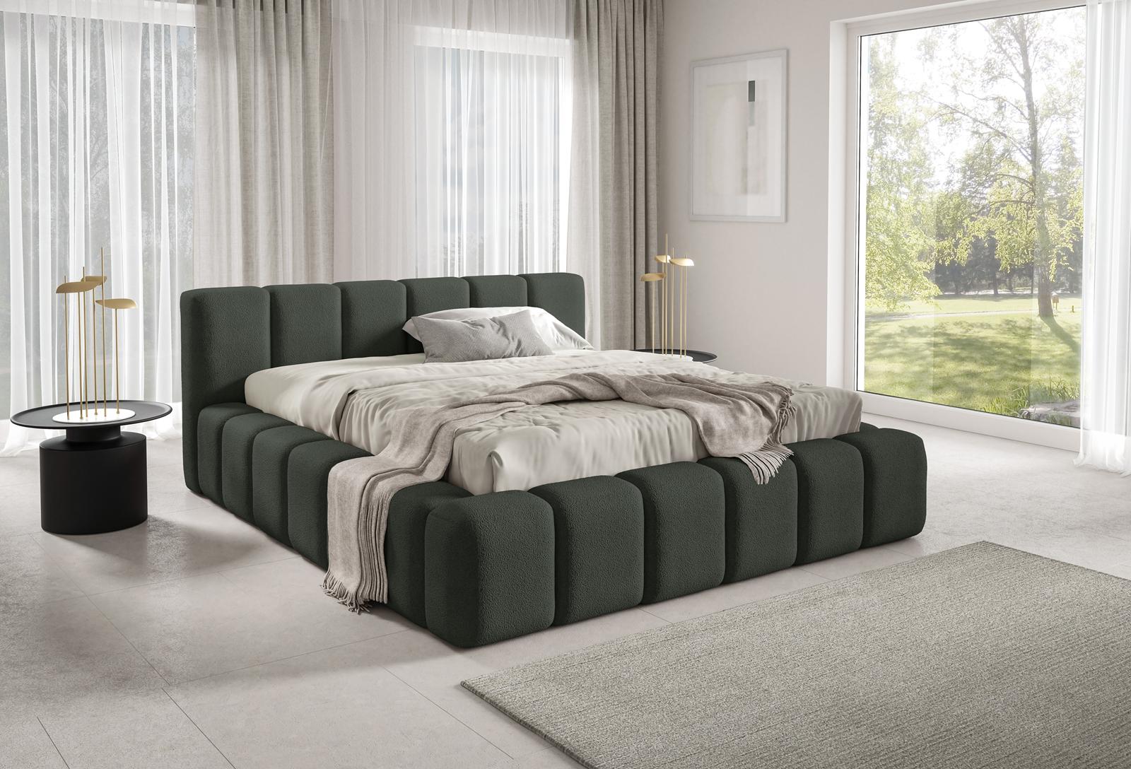 Das Bett KALLA PREMIUM vereint modernes Design, außergewöhnlichen Komfort und praktische Funktionalität. Seine weiche, gepolsterte Form mit markanten Steppnähten verleiht dem Raum Eleganz und eine gemütliche Atmosphäre. Bezogen mit hochwertigem, weichem Stoff Bouclé QUELLE oder Chenille PERFECT HARMONY, begeistert es sowohl durch seine Optik als auch durch die angenehme Haptik, die zudem alltagstauglich und strapazierfähig ist.