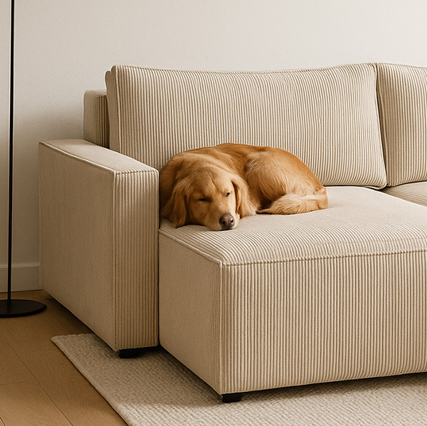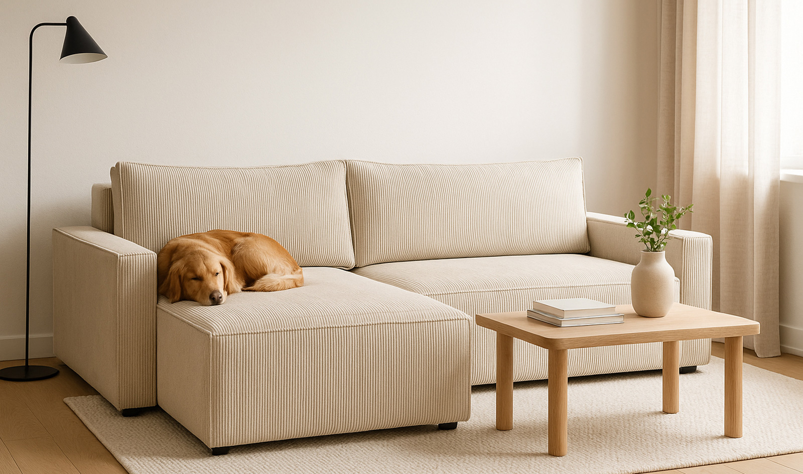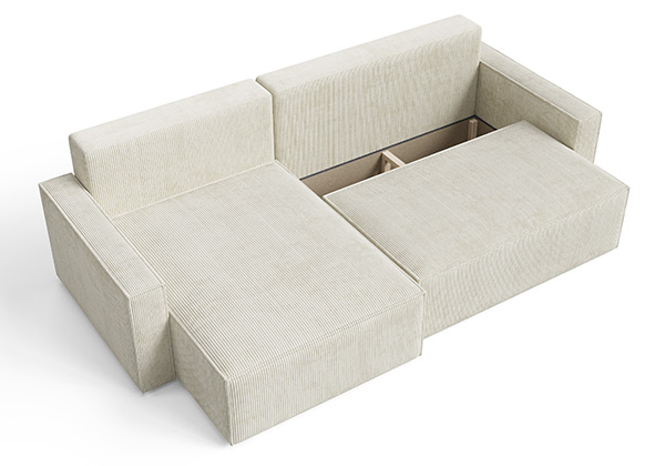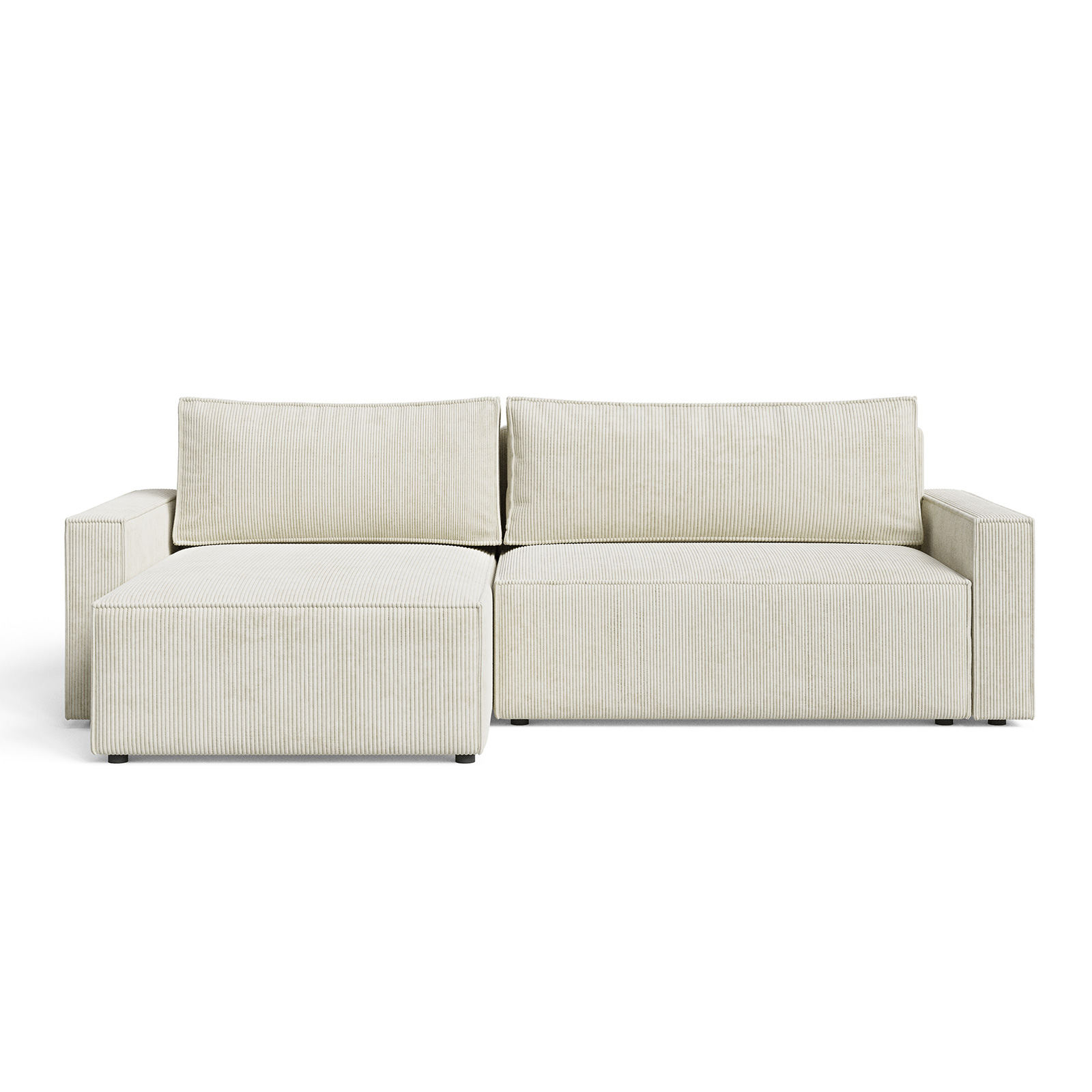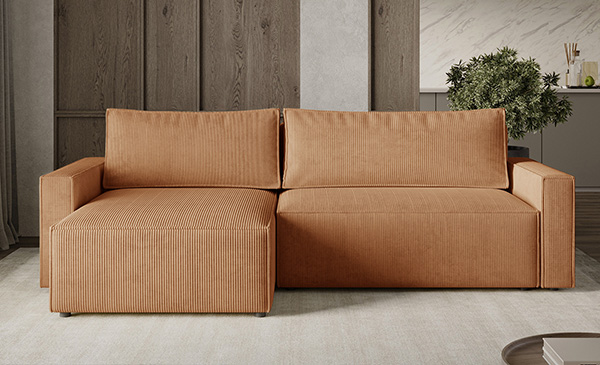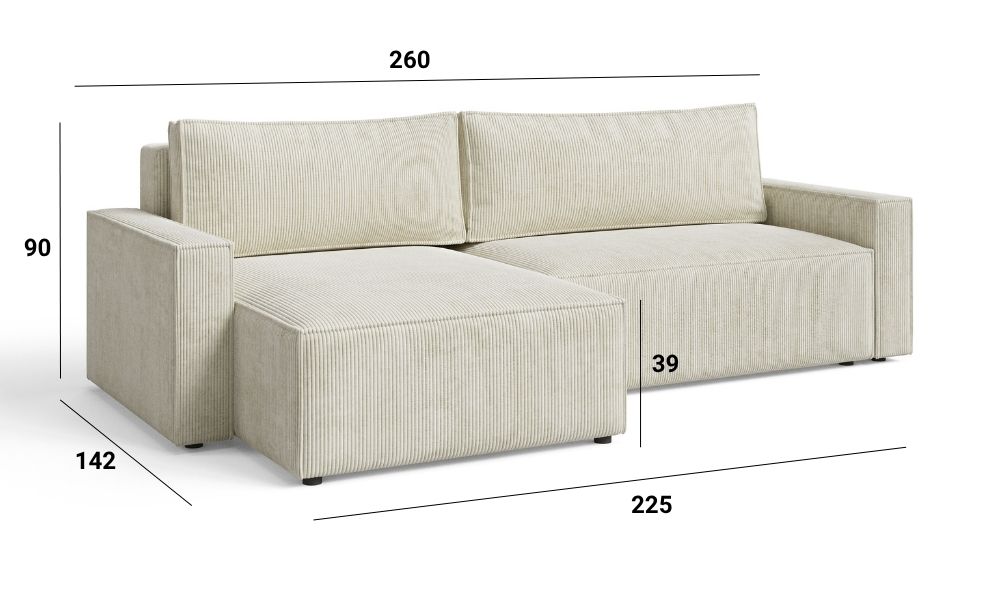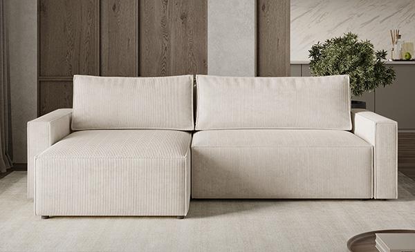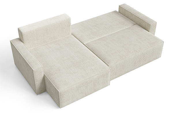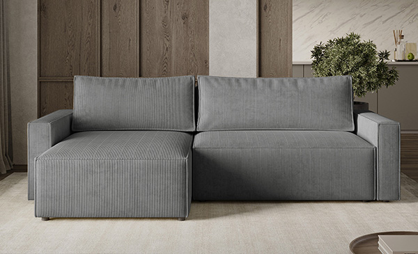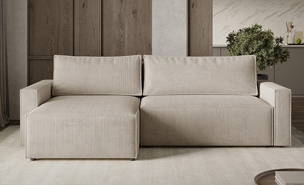 Das Ecksofa LIVIO L bietet die gleiche Verarbeitungsqualität wie seine kleinere Version, das LIVIO S, ist jedoch breiter (ca. 260 cm) und verfügt über eine größere Liegefläche. Sitz und Rücken sind mit Wellenfederung und Polyurethanschaum T28 aufgebaut, wodurch das Sofa dicht und stützend gepolstert ist und dauerhaft hohen Komfort bietet.