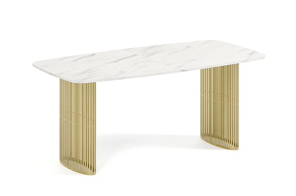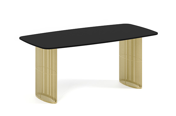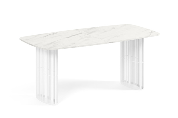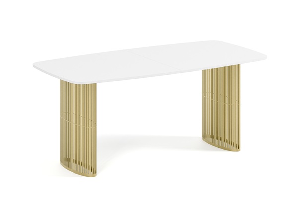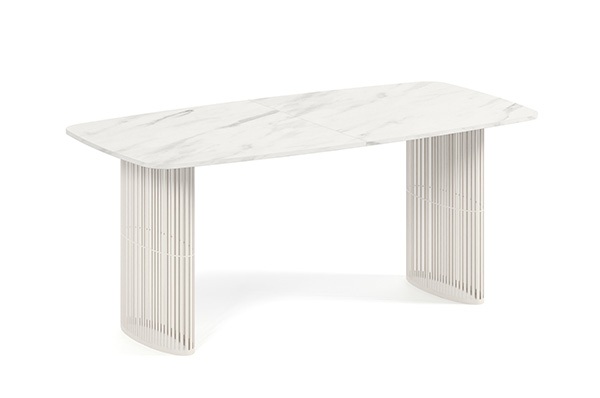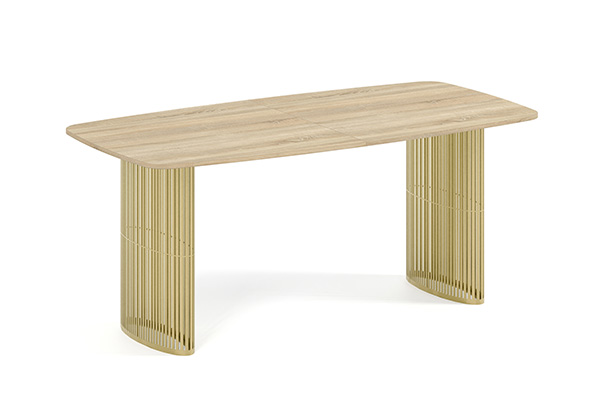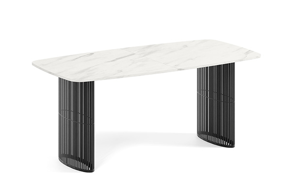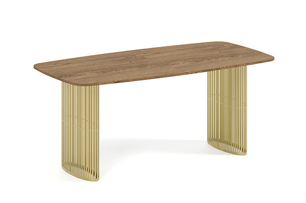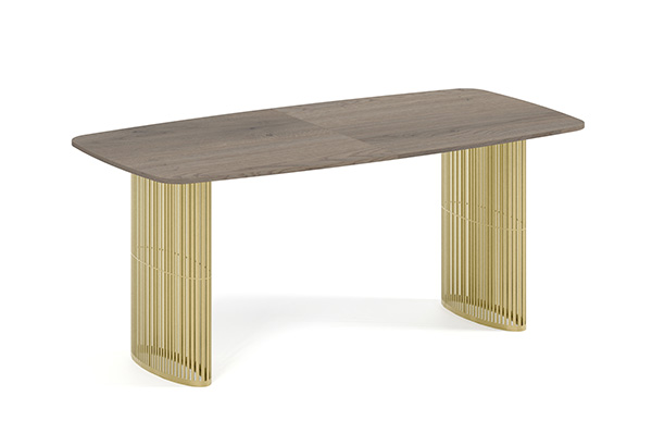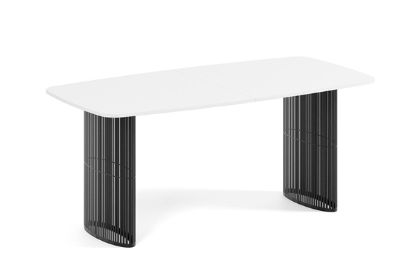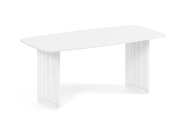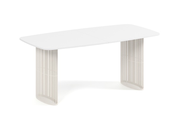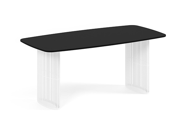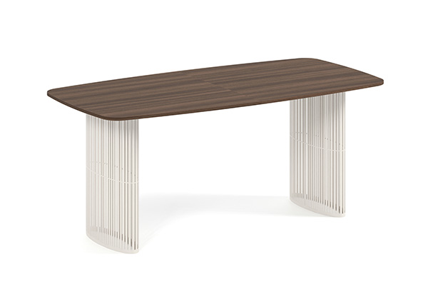 Der Alen-Tisch vereint auf elegante Weise modernes Design und Funktionalität. Seine ovale Tischplatte bietet viel Platz, während die beiden filigranen, geschwungenen Beine für Leichtigkeit und Stabilität sorgen. Dank seines zeitlosen Charakters passt er perfekt in private Wohnräume und Geschäftsräume.