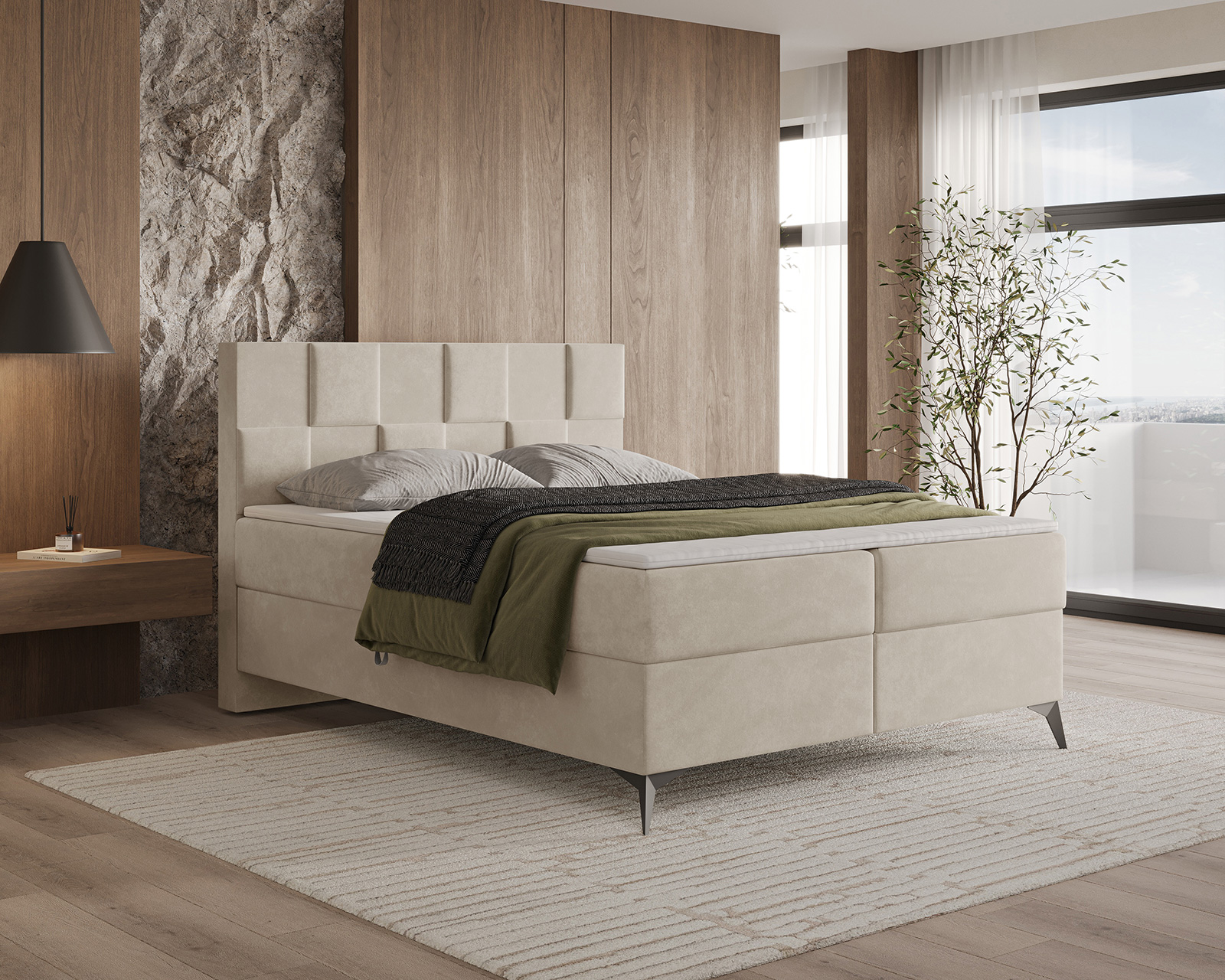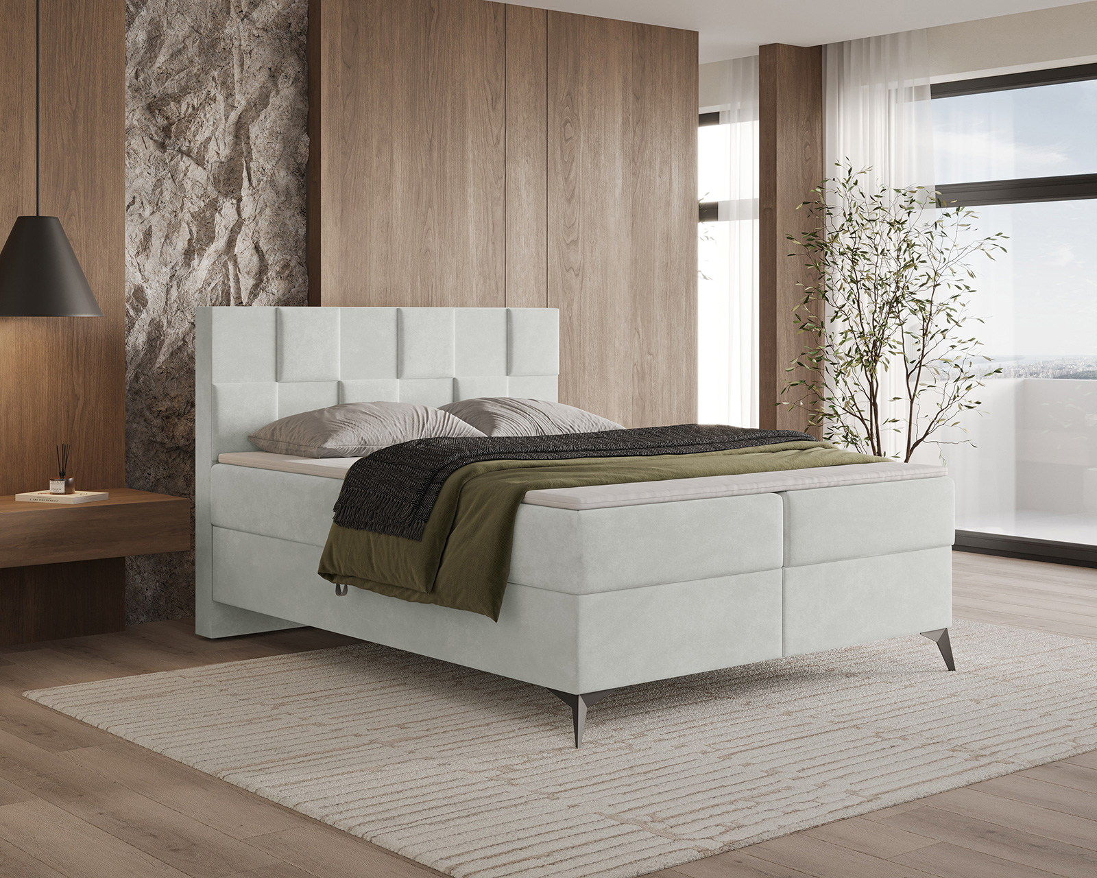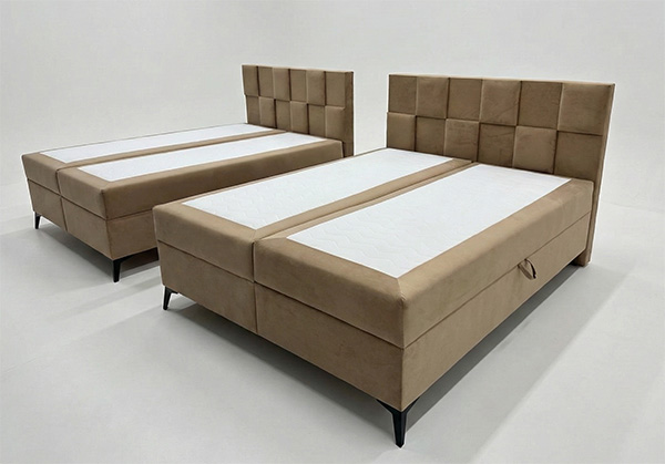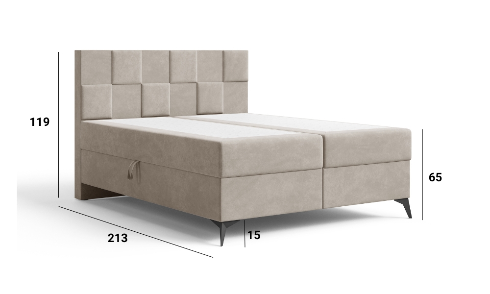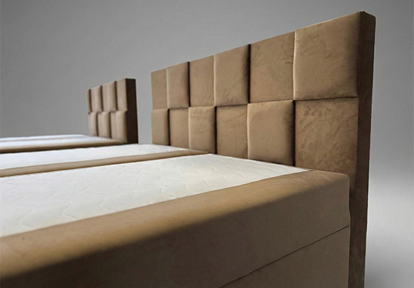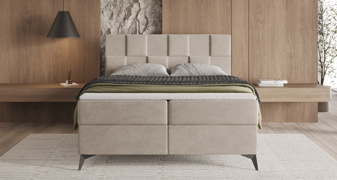 Das Boxspringbett CUBE ist ein moderner Vorschlag für Liebhaber eines markanten, geometrischen Designs. Das gepolsterte, von 3D-Paneelen inspirierte Kopfteil, das aus regelmäßigen Segmenten aufgebaut ist, verleiht der Form einen architektonischen Charakter und zieht mit seiner subtilen Gestaltung die Aufmerksamkeit auf sich. Die weiche, gepolsterte Konstruktion verbindet Ästhetik mit hohem Nutzungskomfort, wodurch sich CUBE perfekt in Schlafzimmer im modernen, Soft-Loft- oder minimalistischen Stil einfügt.