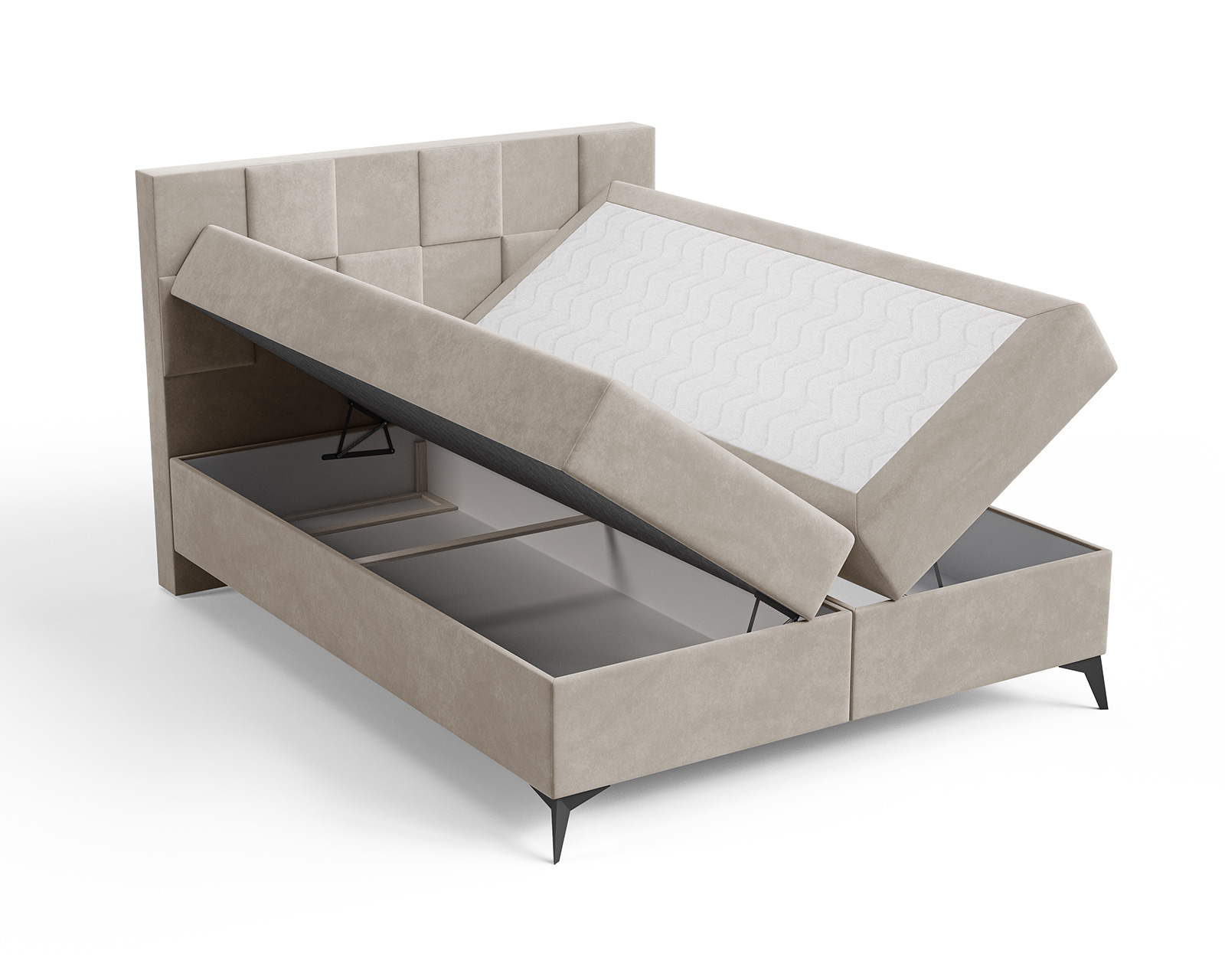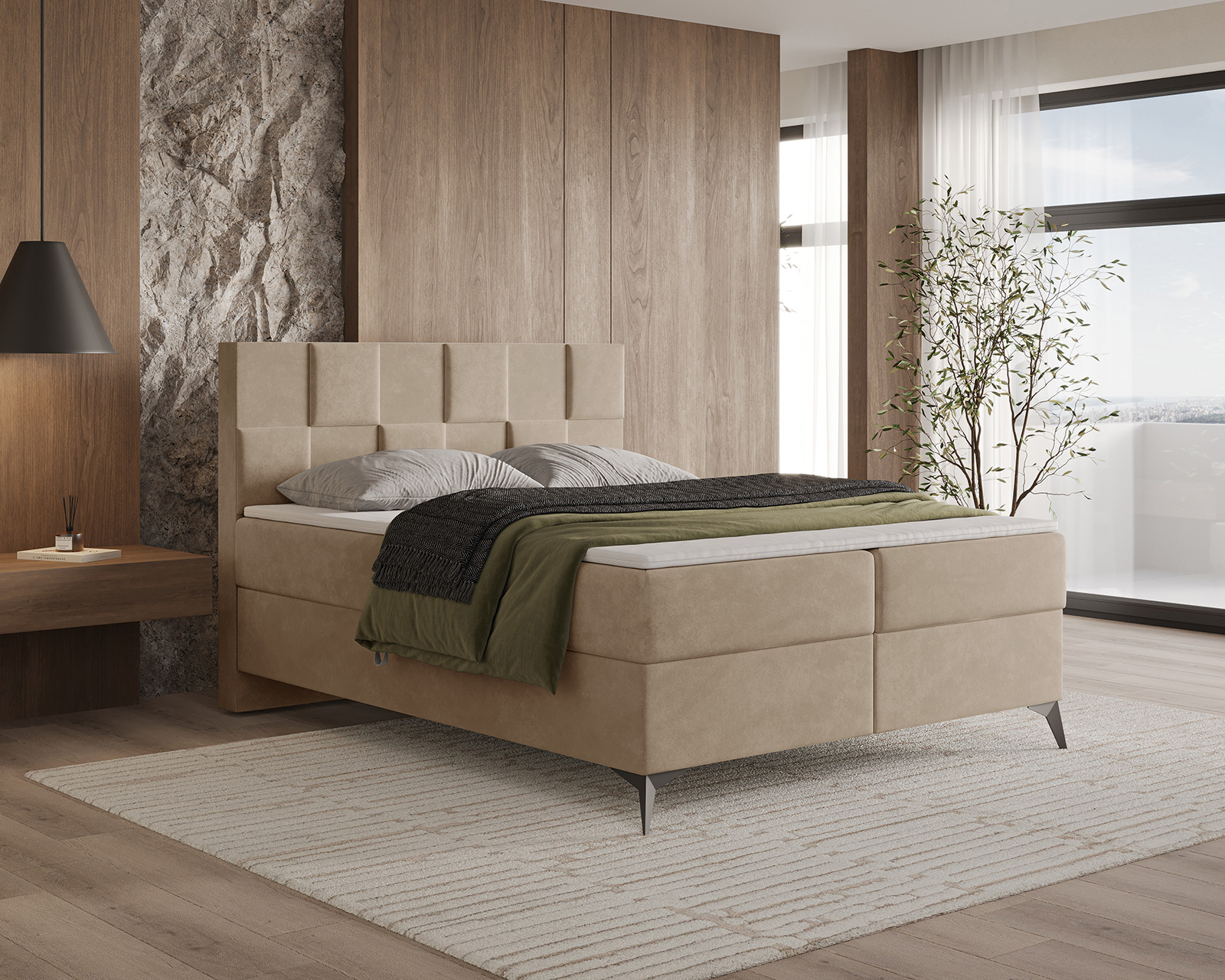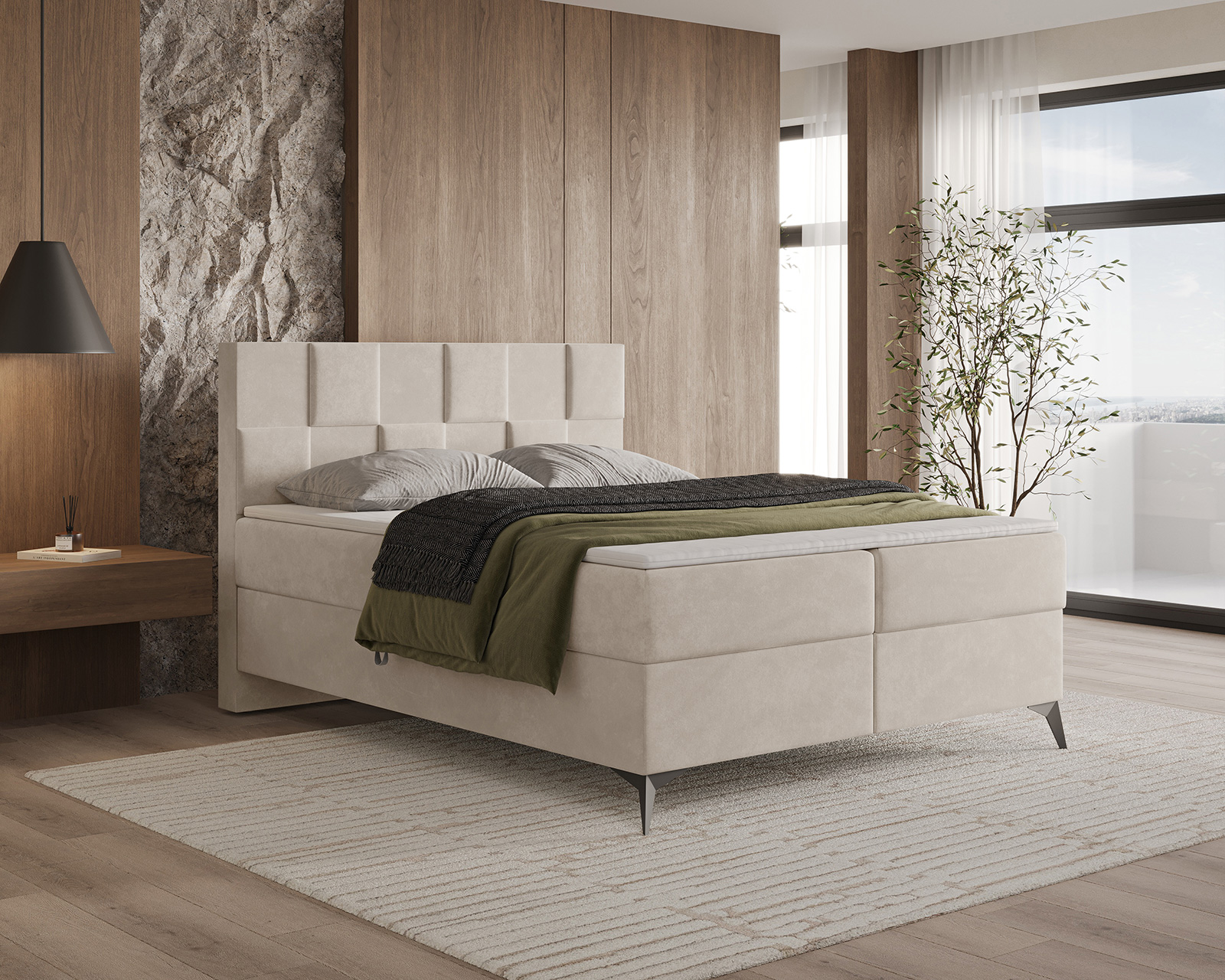 Das Boxspringbett CUBE ist ein moderner Vorschlag für Liebhaber eines markanten, geometrischen Designs. Das gepolsterte, von 3D-Paneelen inspirierte Kopfteil, das aus regelmäßigen Segmenten aufgebaut ist, verleiht der Form einen architektonischen Charakter und zieht mit seiner subtilen Gestaltung die Aufmerksamkeit auf sich. Die weiche, gepolsterte Konstruktion verbindet Ästhetik mit hohem Nutzungskomfort, wodurch sich CUBE perfekt in Schlafzimmer im modernen, Soft-Loft- oder minimalistischen Stil einfügt.