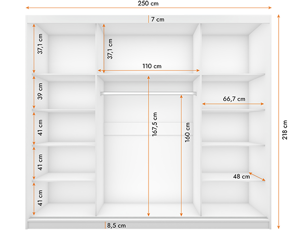 Schwebetürenschrank ASTA mit Spiegel 250 cm