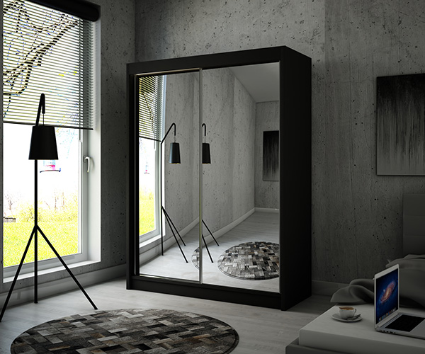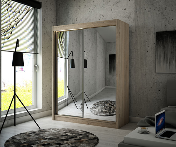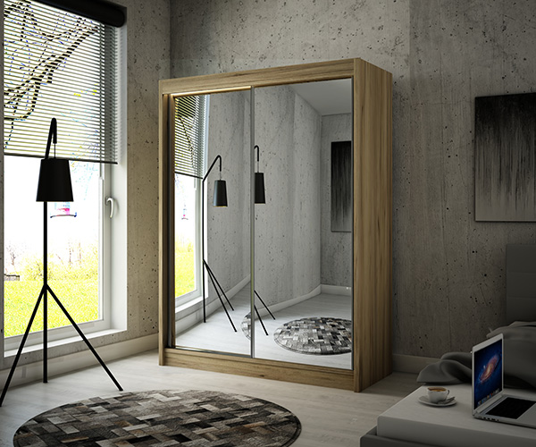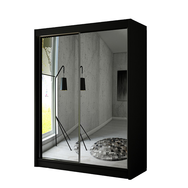 Der Kleiderschrank HOME vereint Eleganz und Funktionalität: Zwei verspiegelte Schiebefronten lassen den Innenraum optisch größer und heller wirken. Zwei Schiebetüren sparen Platz und ermöglichen einen bequemen Zugriff auf den gesamten Inhalt. Im Inneren sorgen Regalböden und eine Kleiderstange für optimale Organisation, während leichtgängige Auszüge und eine robuste Konstruktion für hohen Bedienkomfort sorgen.