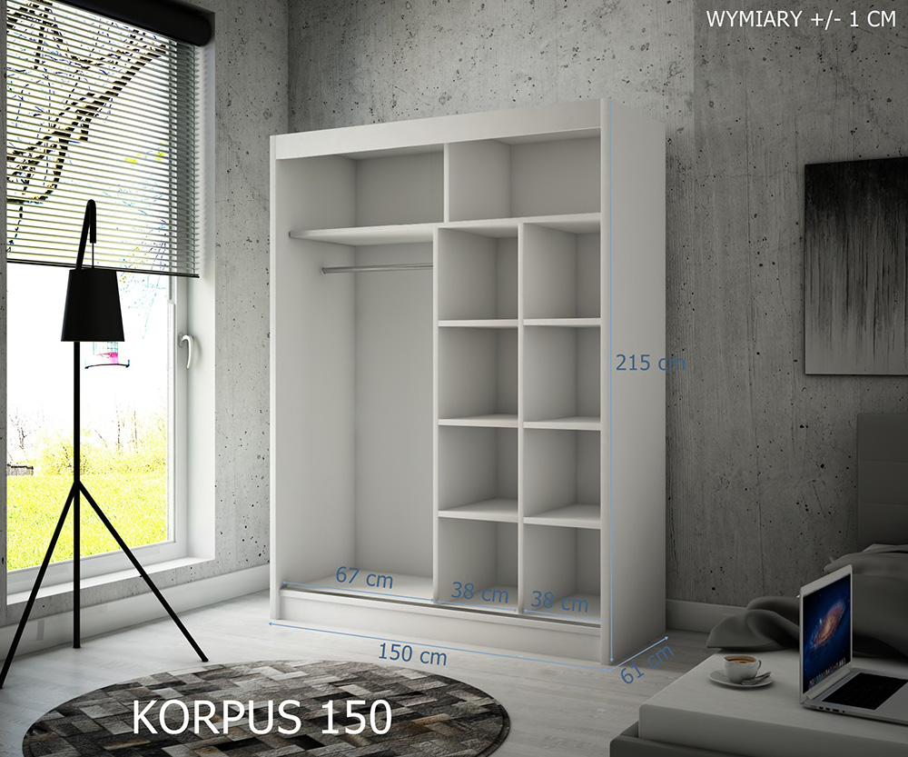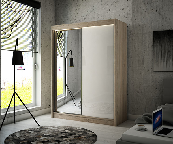 Schwebetürenschrank VELA 150 Spiegel + Lacobel