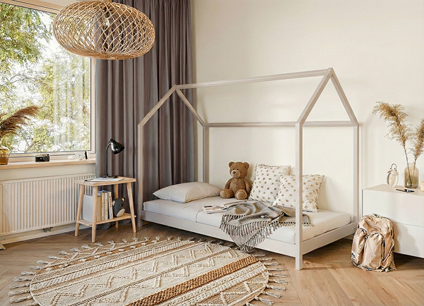 Dieses stilvolle Hausbett aus hochwertigem Holz ist die perfekte Wahl für ein modernes Kinderzimmer. Das skandinavische Design schafft eine gemütliche und sichere Schlafumgebung und regt die Fantasie der Kinder an. Die stabile Konstruktion sorgt für Langlebigkeit und Komfort im Alltag. Erhältlich in den Farben Kiefer, Weiß, Grau, Graphit, Olivgrün und Kaschmir, lässt sich das Kinderbett ideal an verschiedene Einrichtungsstile anpassen. Eine zeitlose Kombination aus Funktionalität, Design und natürlicher Ästhetik.