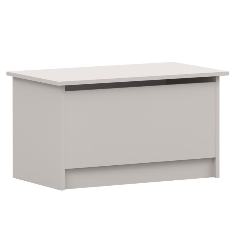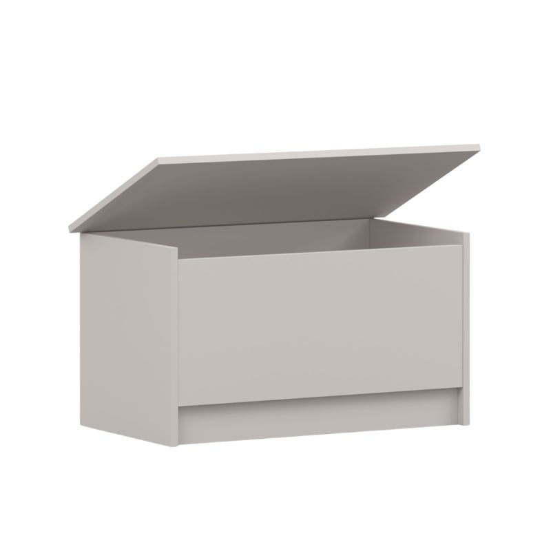 Der geräumige Innenraum bietet viel Platz für Spielzeuge, Kuscheltiere und andere Schätze, während der aufklappbare Deckel ein schnelles und bequemes Aufräumen ermöglicht. Die schlichte Form und die dezente Farbgebung sorgen dafür, dass sich die Truhe harmonisch in verschiedene Raumkonzepte einfügt.