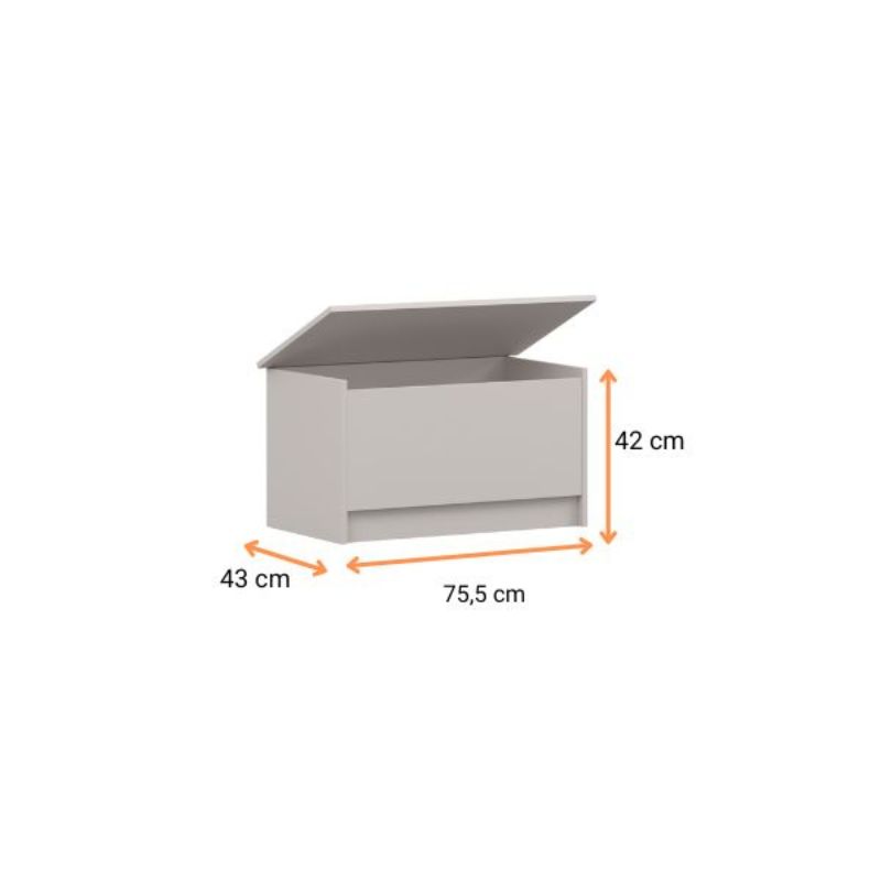 Die Spielzeugtruhe mit aufklappbarem Deckel ist ein praktisches und ästhetisches Möbelstück für das Kinderzimmer. Erhältlich in Weiß und Kaschmir, fügt sie sich harmonisch in verschiedene Einrichtungsstile ein. Der geräumige Innenraum bietet viel Platz für Spielzeuge und Kuscheltiere und hilft dabei, Ordnung zu halten.