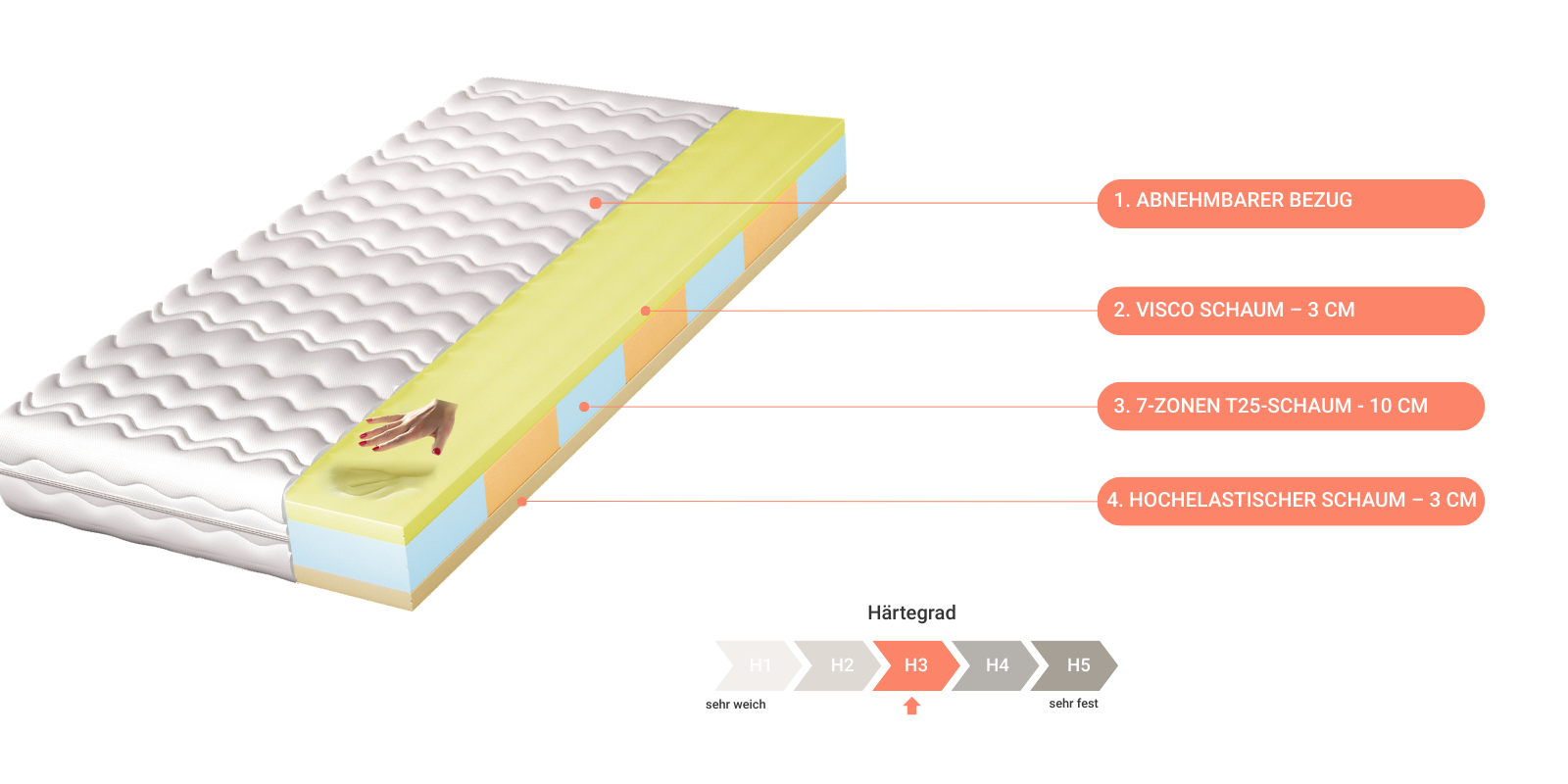 Schaummatratze SELLY 18 cm – bequeme Komfort Matratze H3