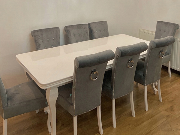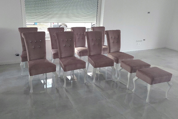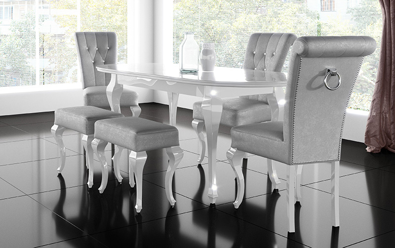 Der gepolsterte Stuhl GS61 unterstreicht nicht nur den Stil Ihrer Küche oder Ihres Esszimmers, sondern bietet auch hohen Komfort bei langen Zusammenkünften mit Ihren Liebsten. Er passt perfekt in glamouröse, moderne oder klassische Innenräume und ist in vielen Farben erhältlich. Der Stuhl harmoniert hervorragend mit den in unserem Sortiment verfügbaren Tischen. Er ist in zwei Varianten erhältlich: mit Knöpfen (Modell GS61) oder mit Kristallen (Modell GS62). Türklopfer und Zierleiste sind gegen einen Aufpreis als zusätzliche Optionen erhältlich.