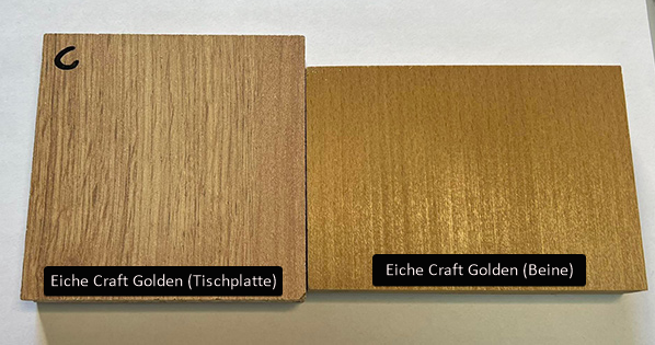 Beispielpräsentation für eine laminierte Platte aus Eiche Craft Golden und lackierte Beine aus Eiche Craft Golden: